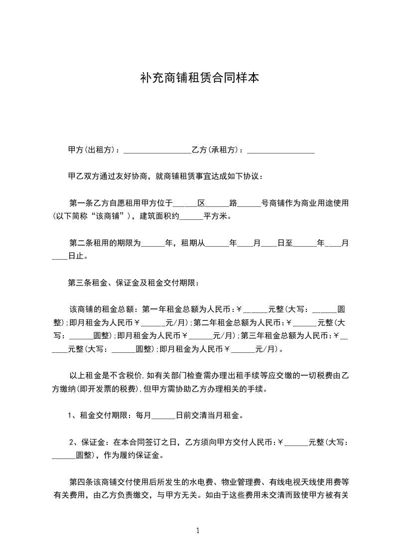 1、甲方须于______年____月____日将该商铺交付乙方使用。