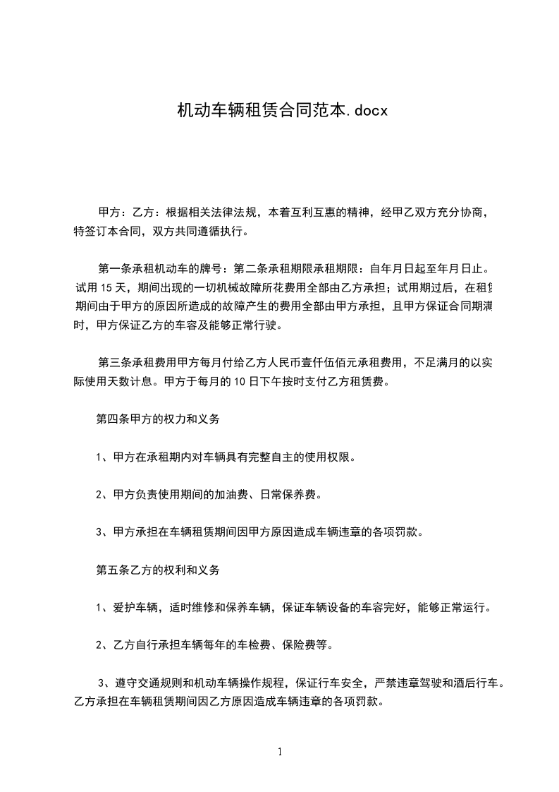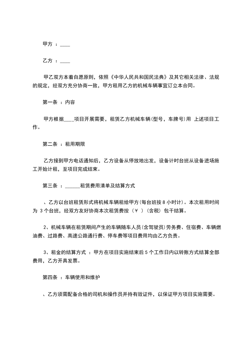 1、车辆租赁期为__年,即自_______年____月_____日起至________年____月_____日止,如有变更,甲乙双方另行协商。
