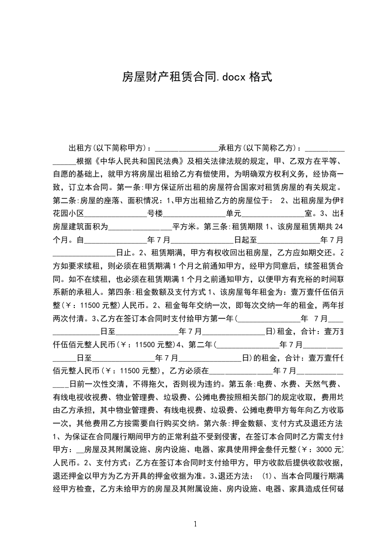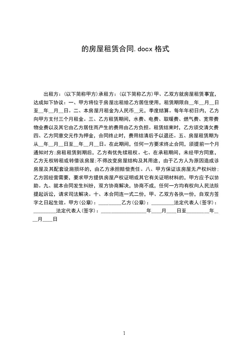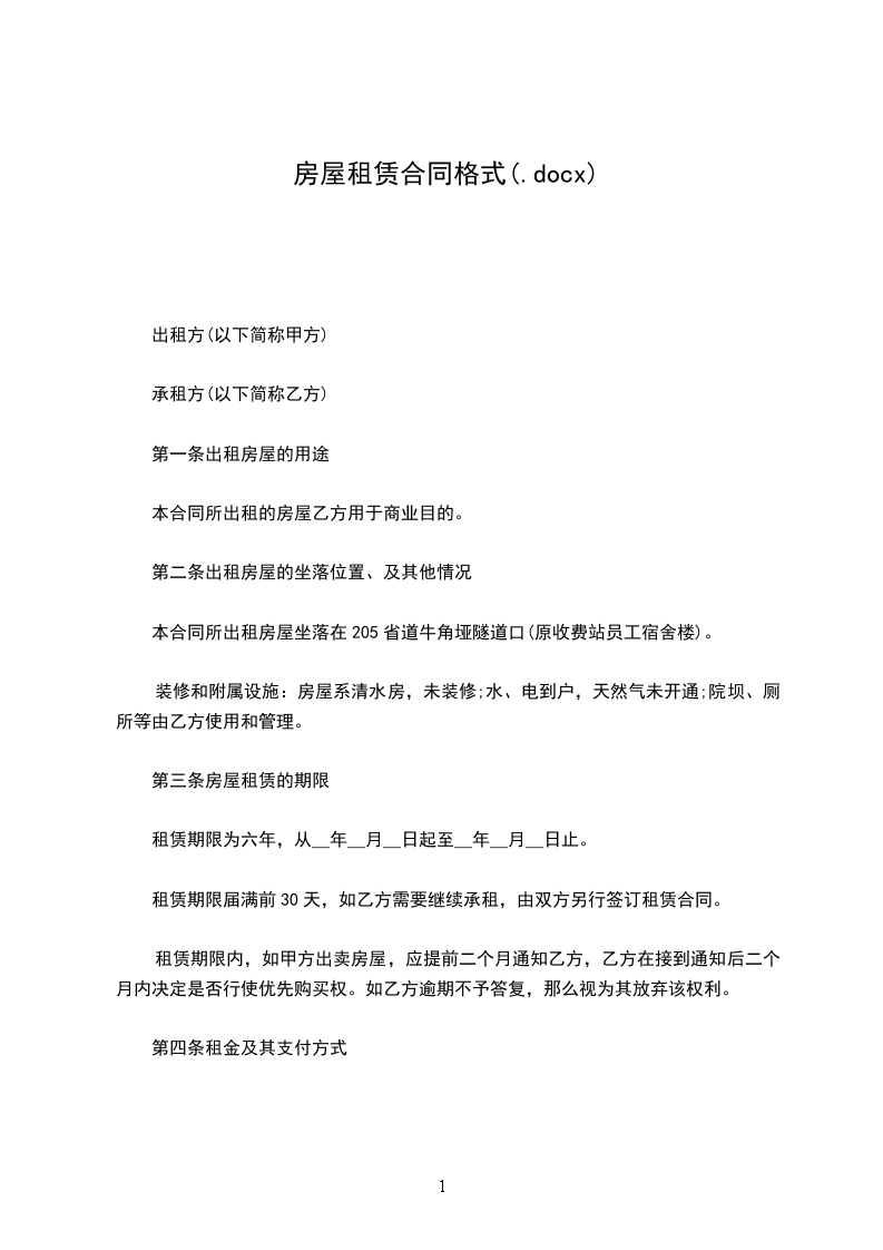 第一条出租房屋的用途