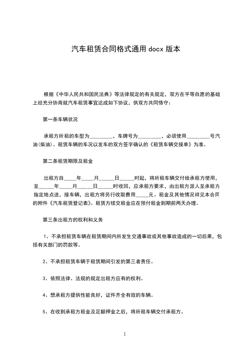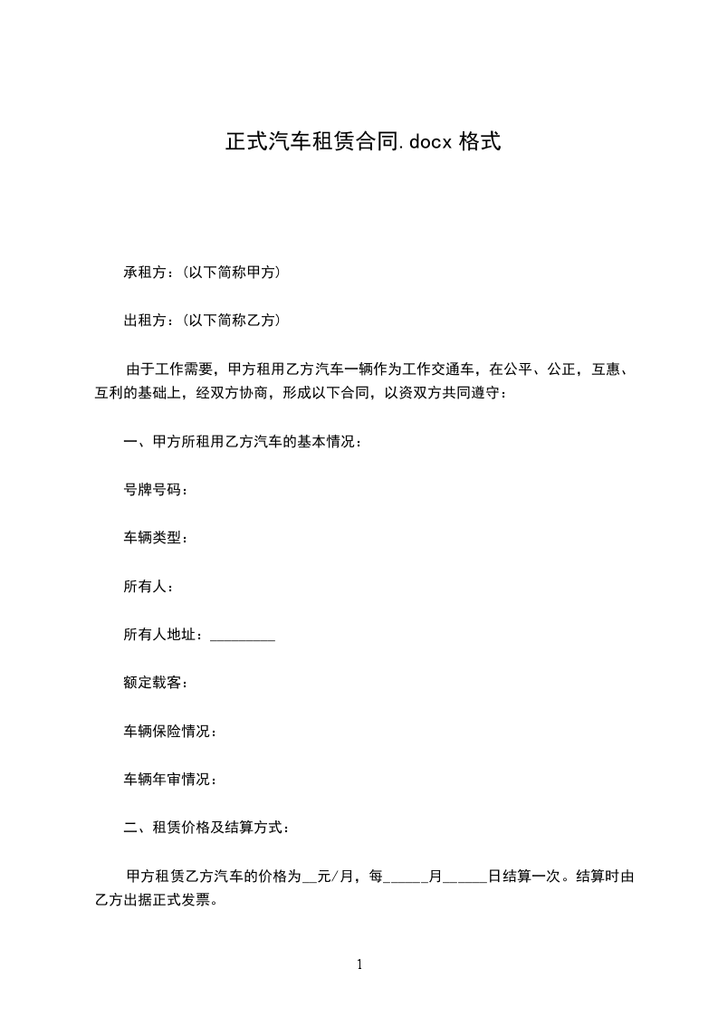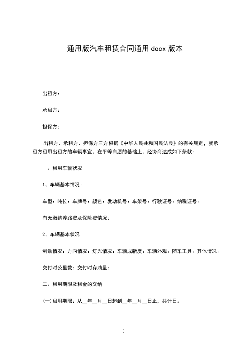 1、甲方将其所有的_________车型,车牌号码__________,从______年_____月______日时起租给乙方使用至______年______月______日时止收回。