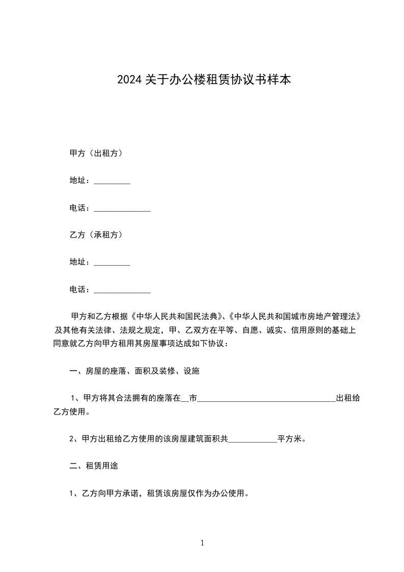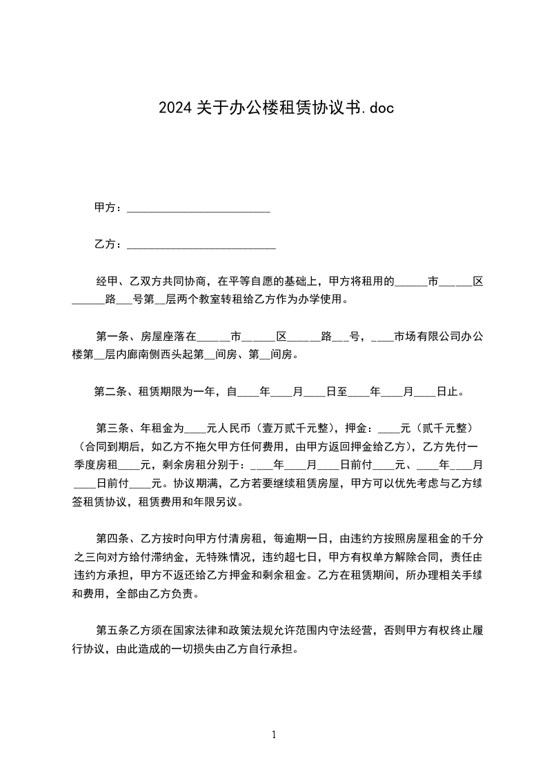 1、甲方将位于______市北站路_____号综合办公楼_____楼内半层转租给乙方作办公使用。该层办公楼原为甲方向______市______商贸有限公司所租赁的。