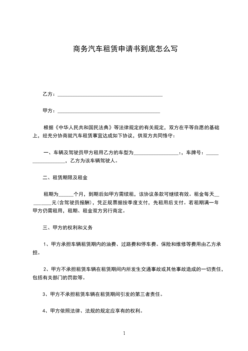 经甲乙双方平等协商,就租车事宜达成如下协议: