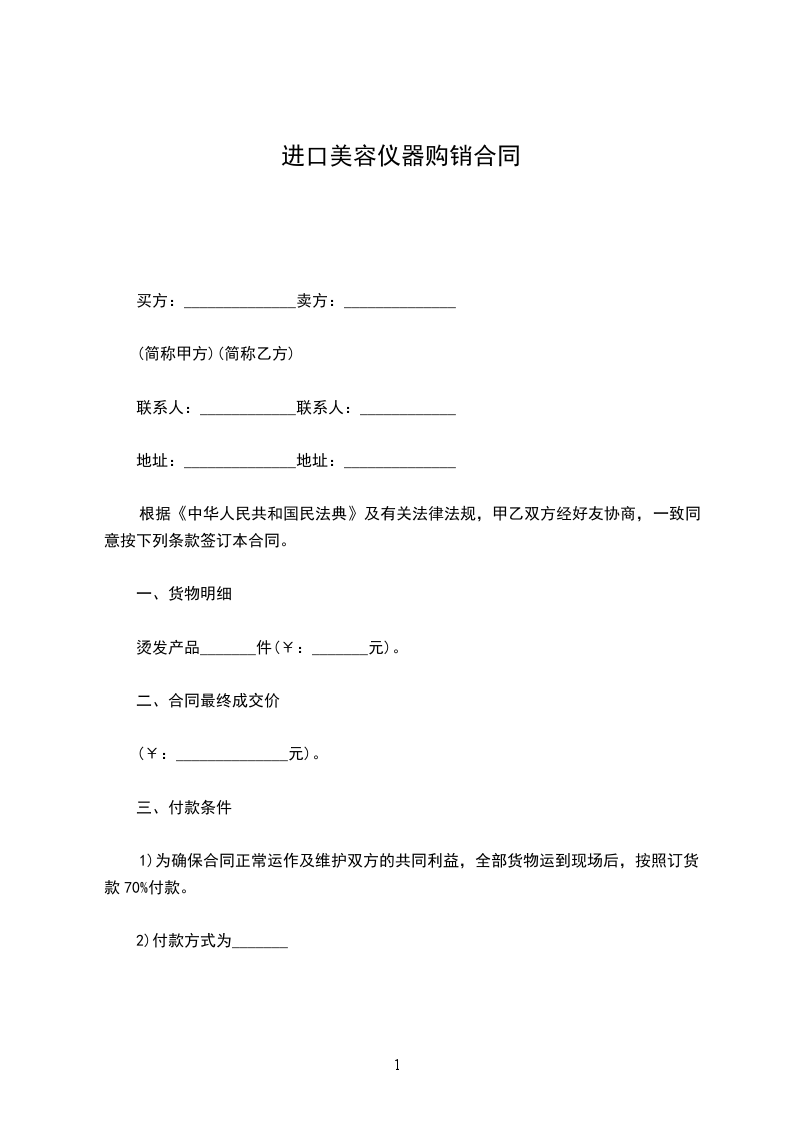 1)为确保合同正常运作及维护双方的共同利益,全部货物运到现场后,按照订货款70%付款。