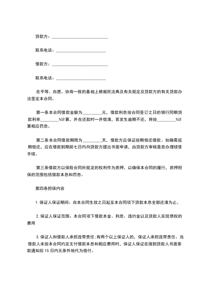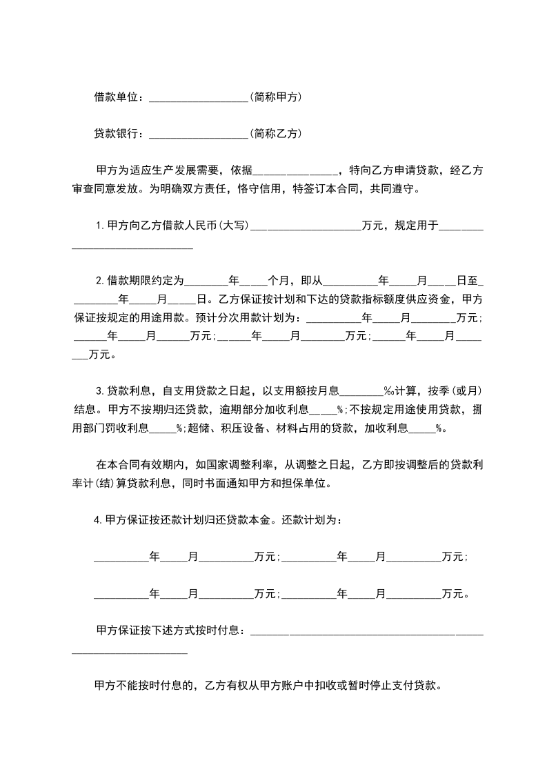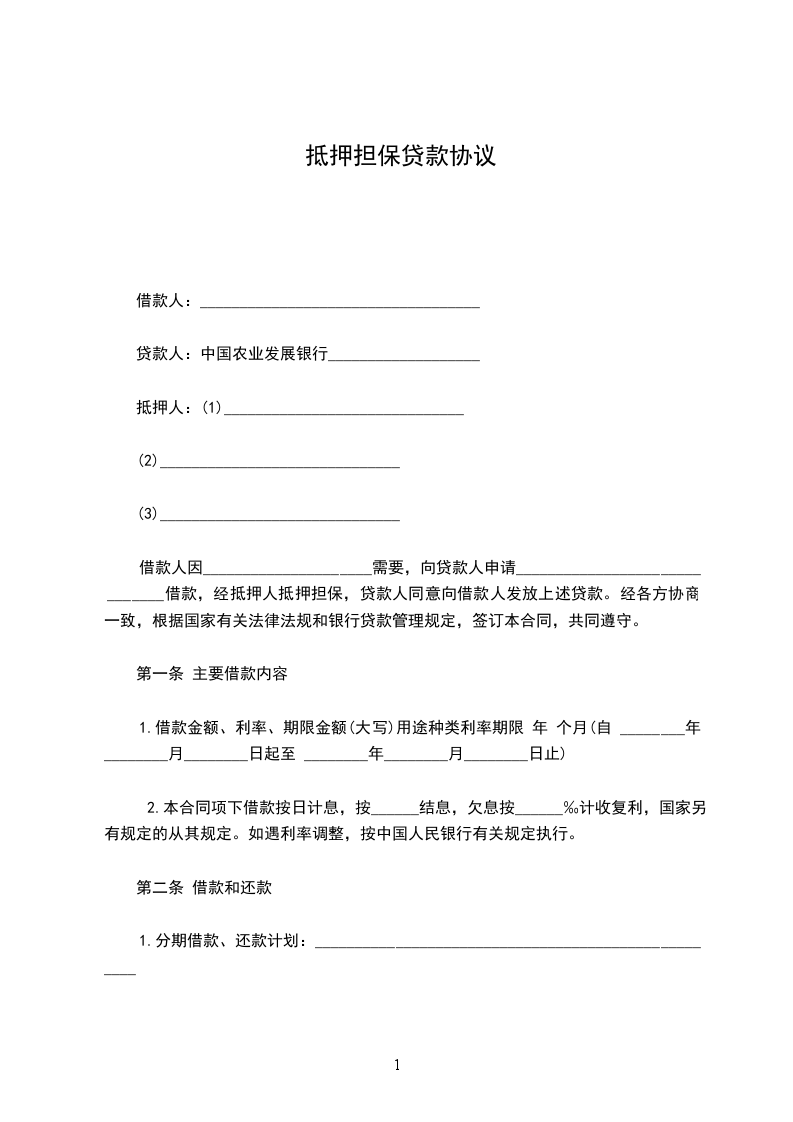 第二条 甲方抵押担保的贷款金额(大写)_____________元贷款期限自______年____月____日至______年____月____日。
