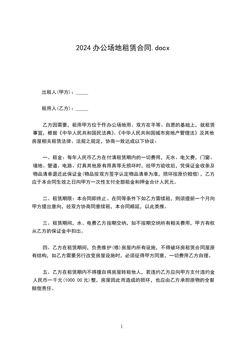 乙方因需要,租用甲方位于作办公场地用。双方在平等、自愿的基础上,就租赁事宜,根据《中华人民共和国民法典》、《中华人民共和国城市房地产管理法》及其他房屋相关租赁法律、法规之规定,协商一致达成以下协议: