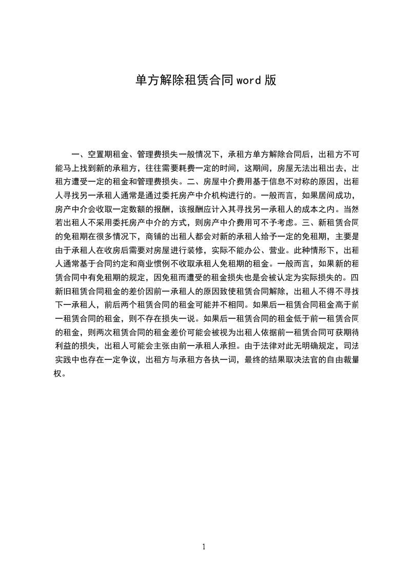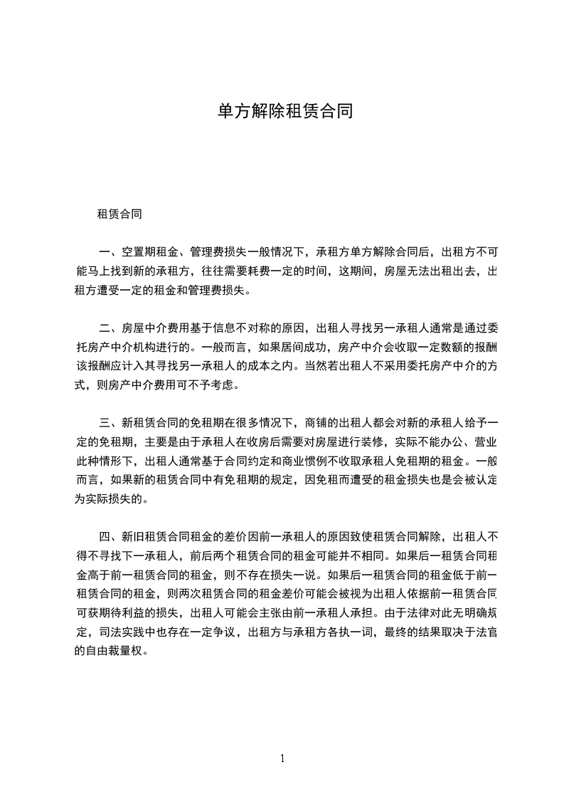 二、确认被告一与被告二之间的租赁关系自然终止;
