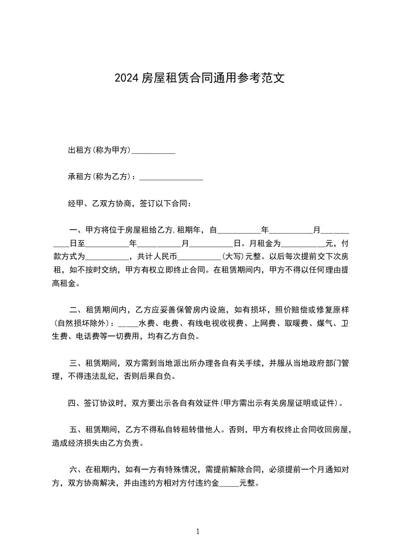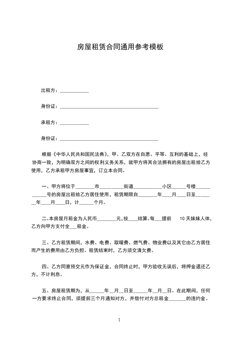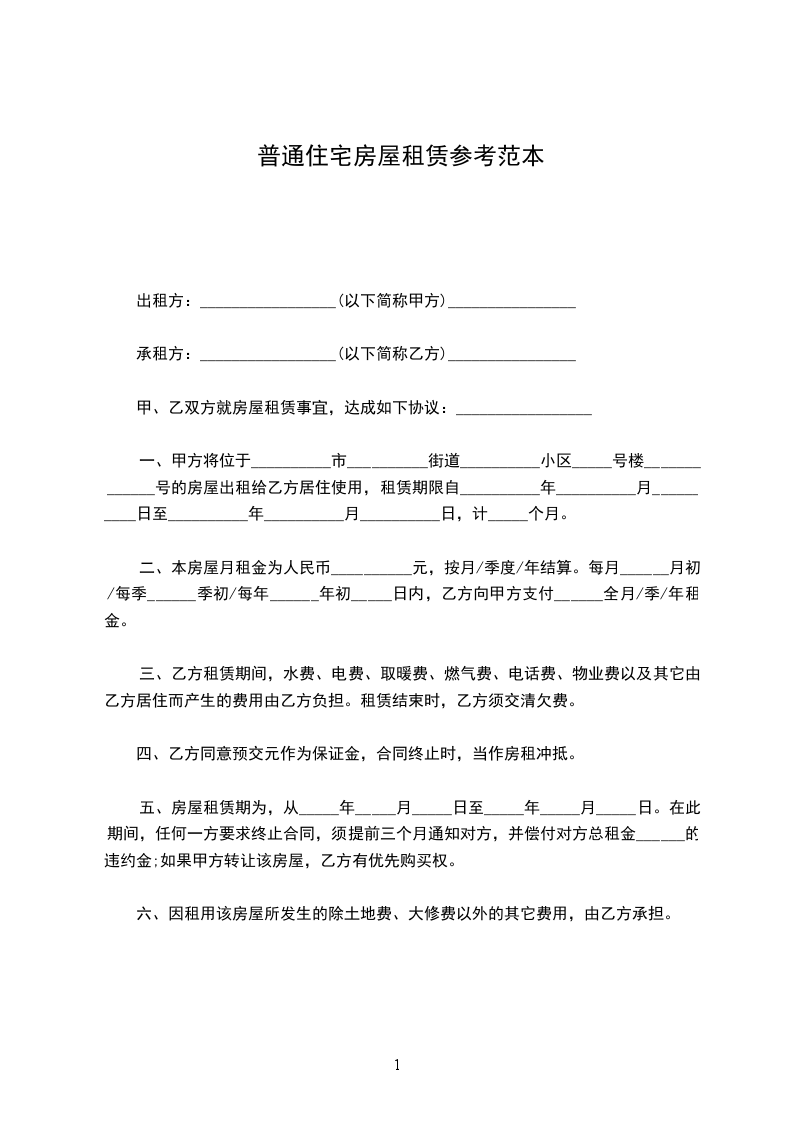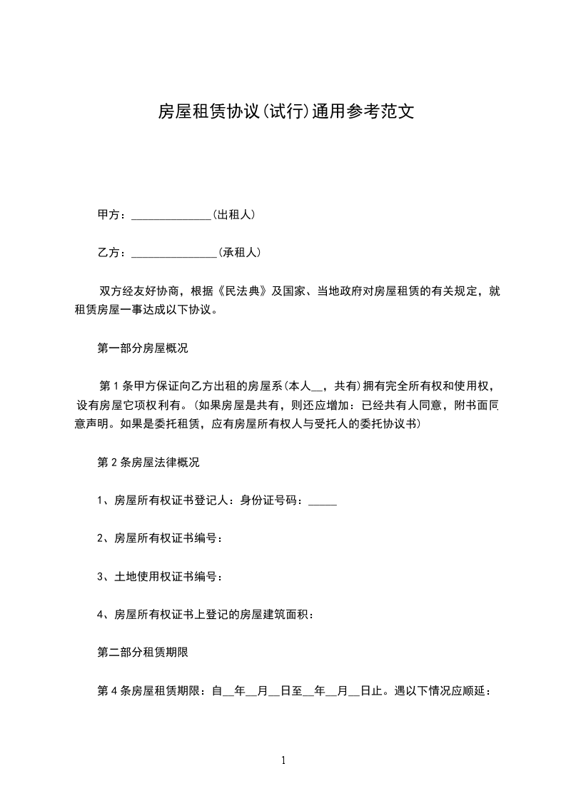 (一)租赁期自___年___月_日至___年__月__日,共计___年__个月。