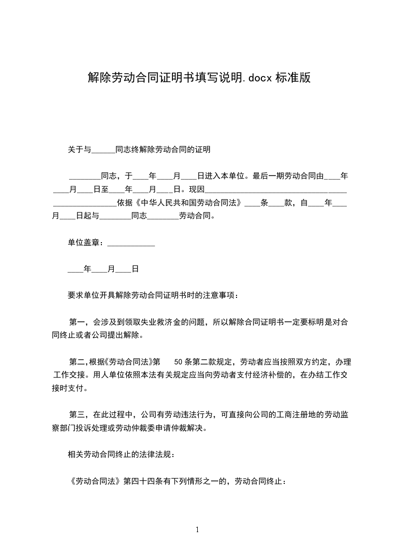 第一,会涉及到领取失业救济金的问题,所以解除合同证明书一定要标明是对合同终止或者公司提出解除。