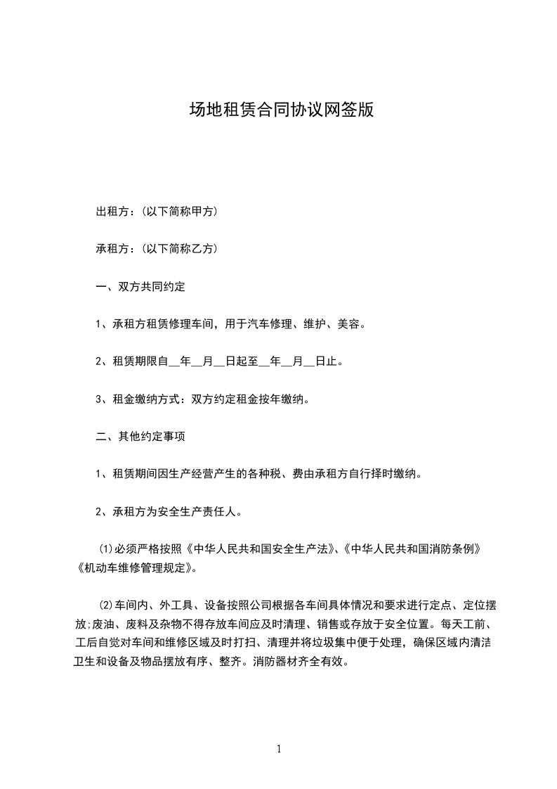 1、承租方租赁修理车间,用于汽车修理、维护、美容。