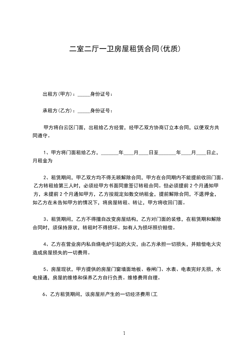 1、该房屋租赁期共_____个月。自__年__月__日起至__年__月__日止。