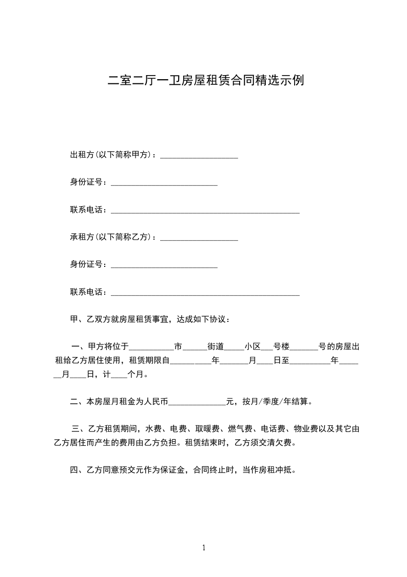 哈尔滨个人房屋租赁合同范本