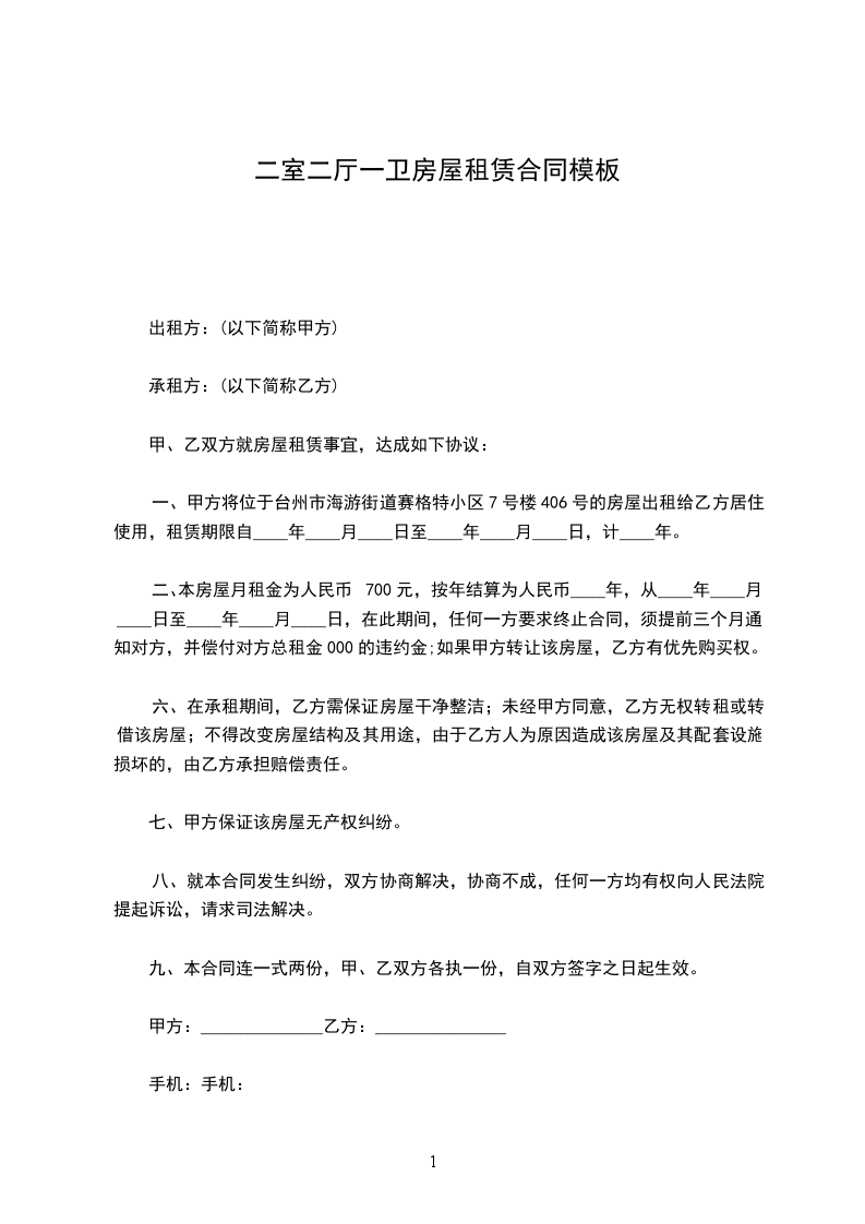 1、甲方出租给乙方的房屋位于(省、市)(区、县);门牌号为