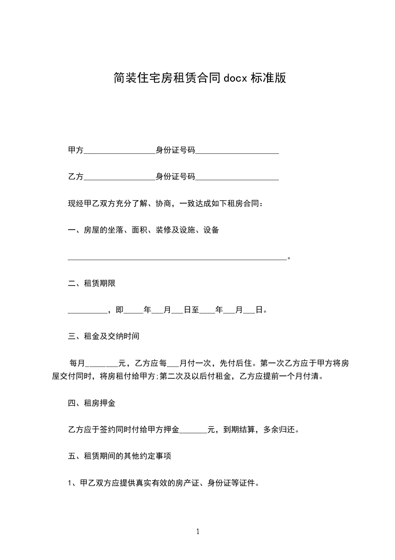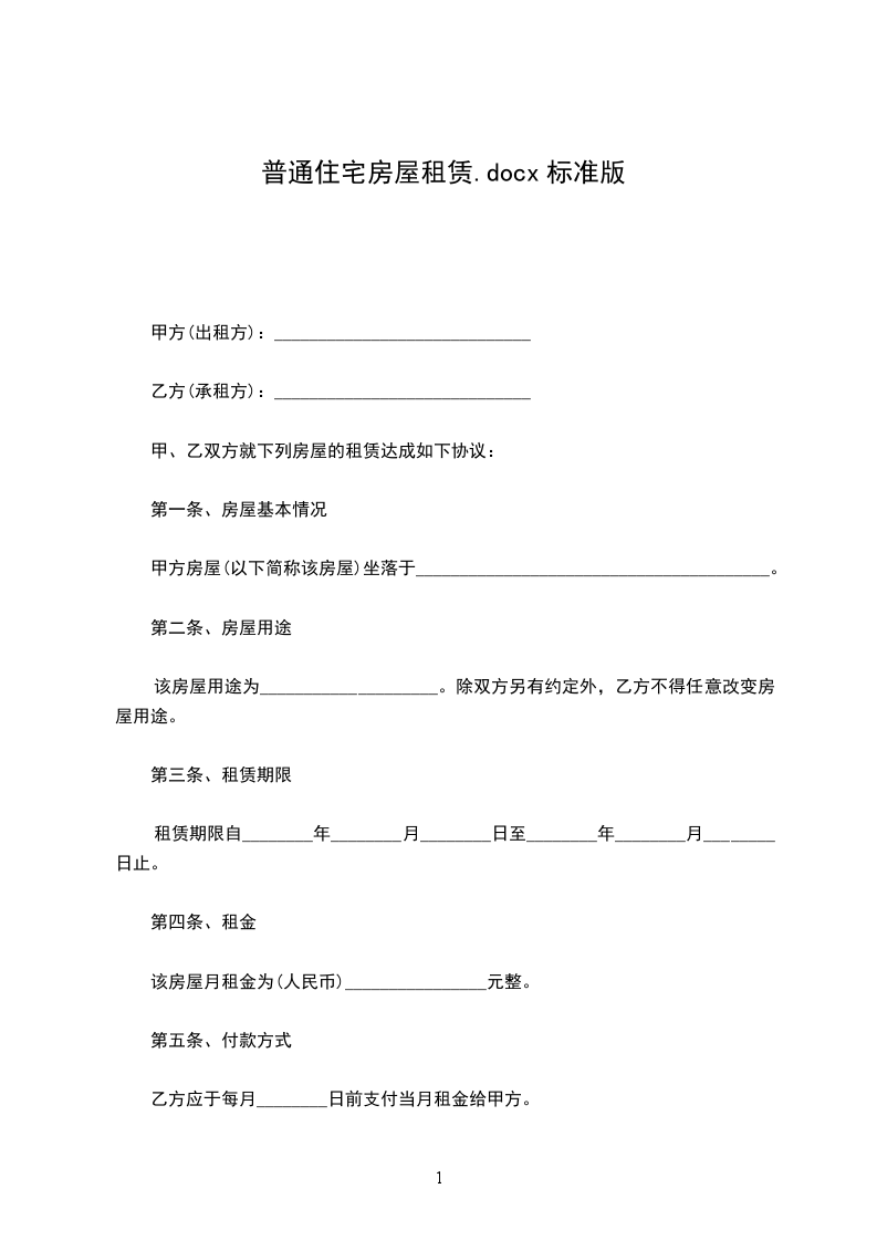 一、甲方将位于市街道小区号楼号的房屋出租给乙方暂时居住使用,租赁的期限自__年__月__日至__年__月__日,计_____个月。