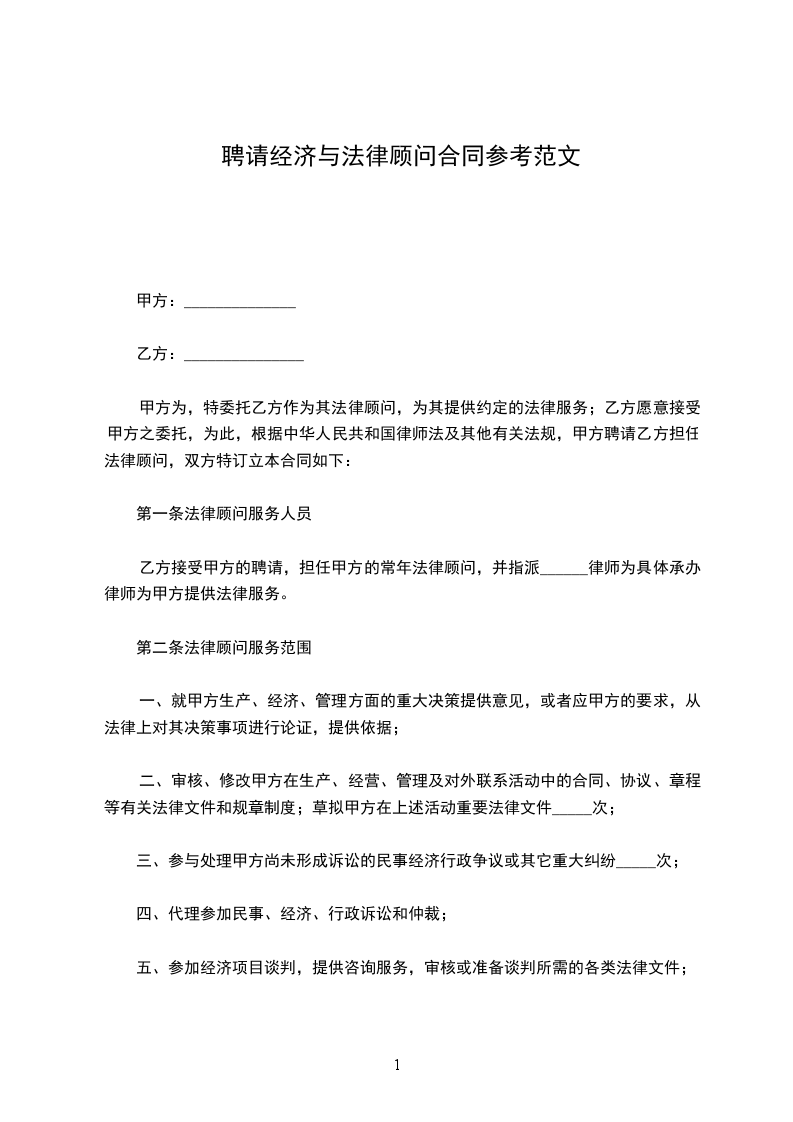 第二条法律顾问服务范围