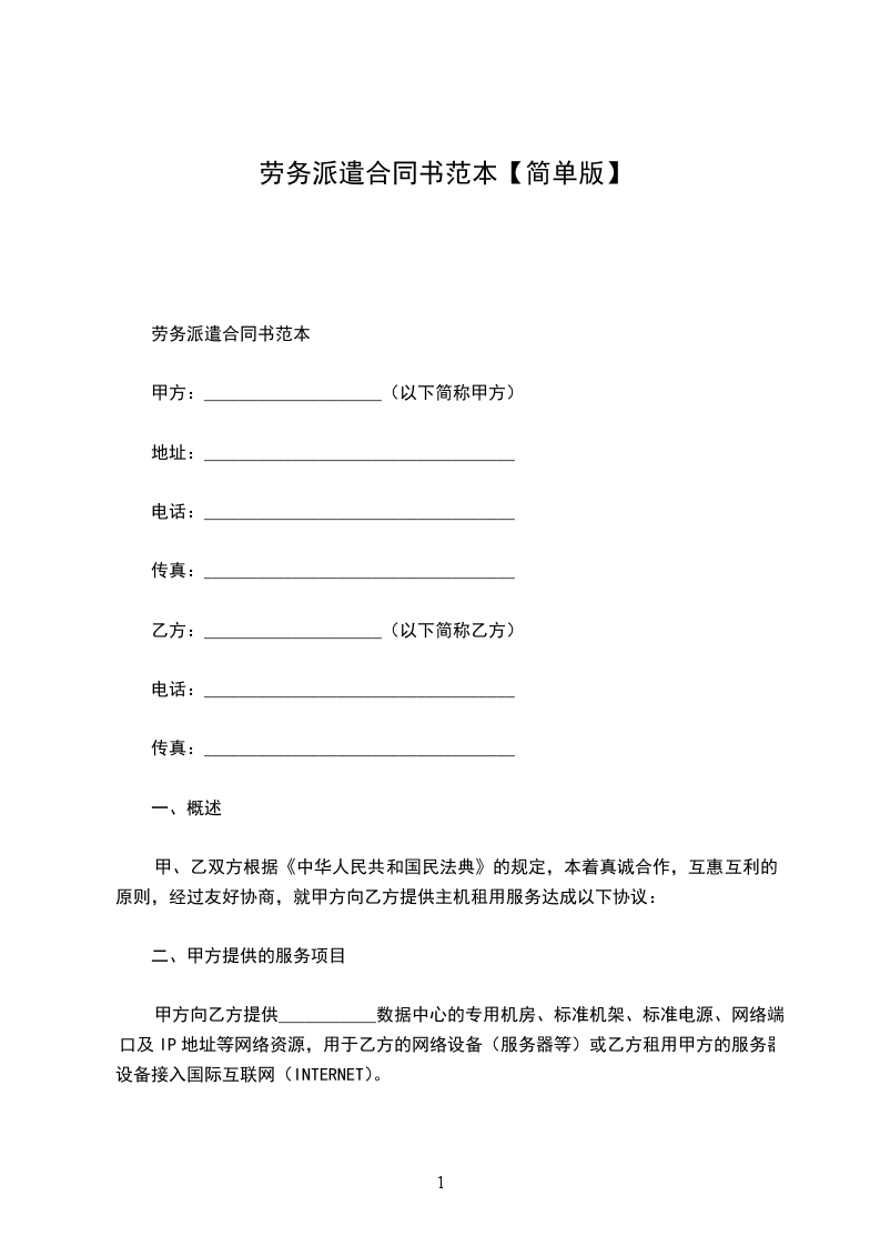 二、劳务派遣内容: