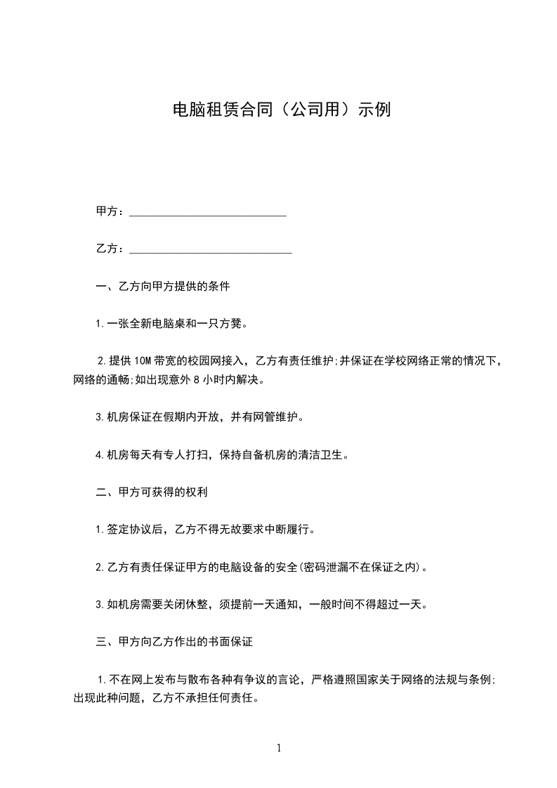 2.乙方有责任保证甲方的电脑设备的安全(密码泄漏不在保证之内)。