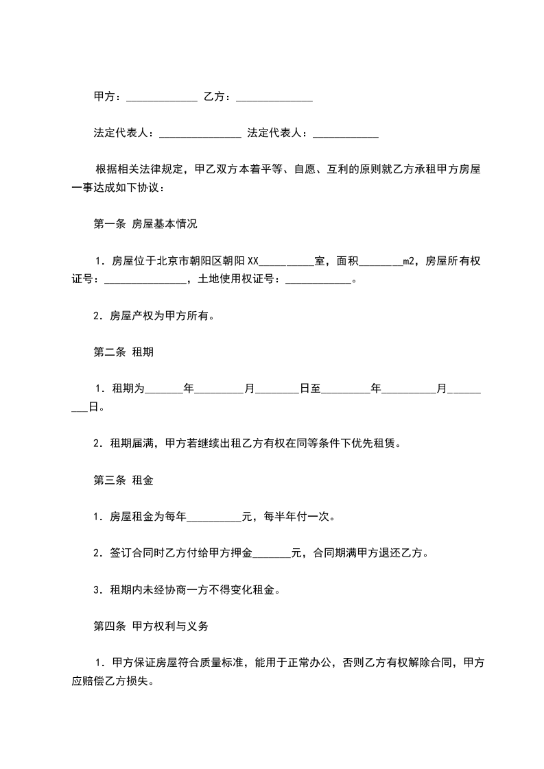 第五条甲方将向乙方出租_________园_________号楼,建筑面积共计约为_________平方米,作为乙方_________的经营场所。(实际面积以有关部门出具的面积勘测表为准)