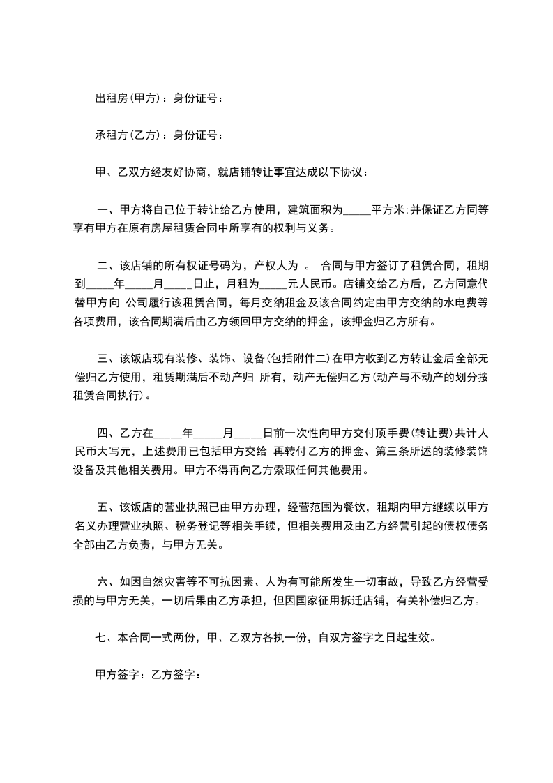 甲方拥有饭店一处()其中包括厨房主、餐厅、雅间,建筑面积约为平方米。