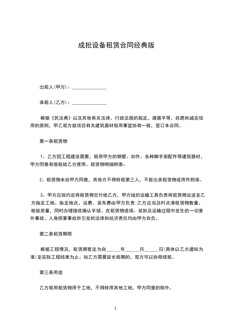 根据《民法典》以及其他有关法律、行政法规的规定,遵循平等、自愿和诚实信用的原则,甲乙双方就项目有关建筑器材租用事宜协商一致,签订本合同。
