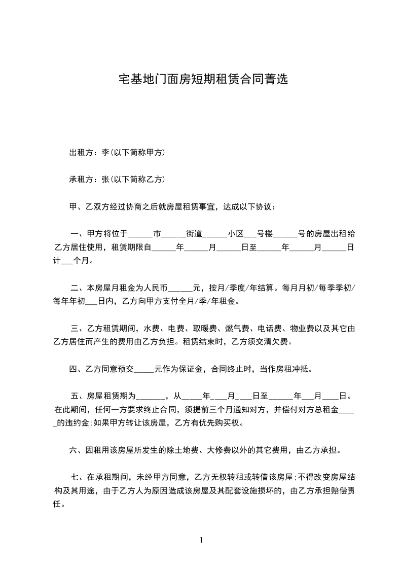 1、甲方店面包括___层租给乙方,租期为___年,从__________年_____月_____日到__________年_____月_____日止。