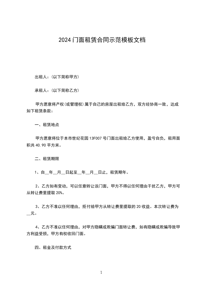 甲方愿意将位于本市世纪花园13F007号门面出租给乙方使用,盈亏自负,租用面积共40.90平方米。