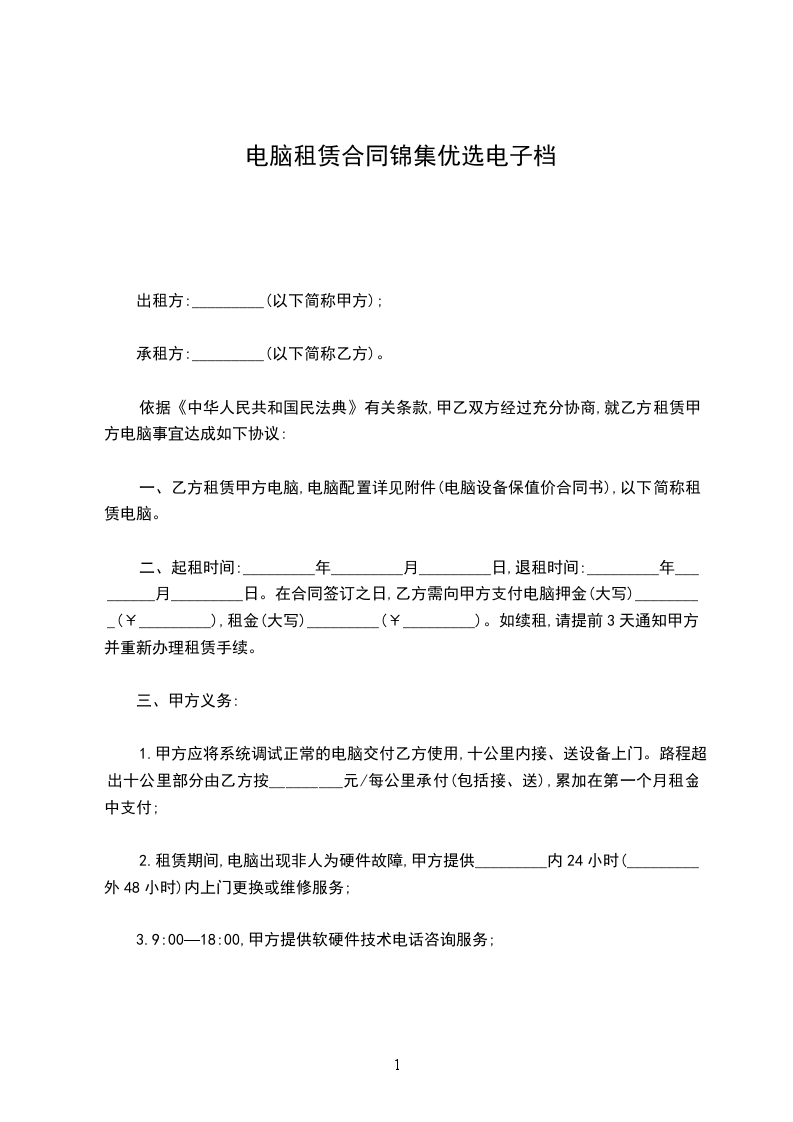 1.租赁期间,电脑出现非人为物理故障,乙方有权要求甲方在接报修电话后_________内24小时(_________外48小时)上门维修;