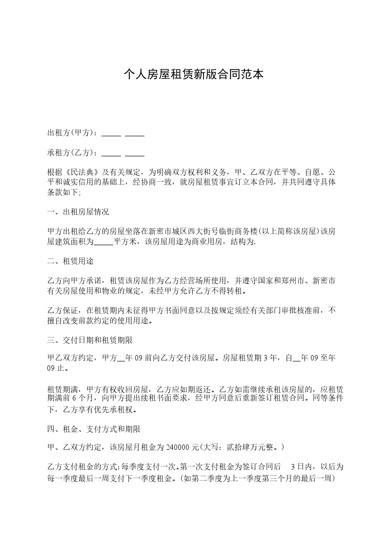 3、物业费和取暖费:一年共计(大写)元,乙方于承租住房首日一次性交付甲方。