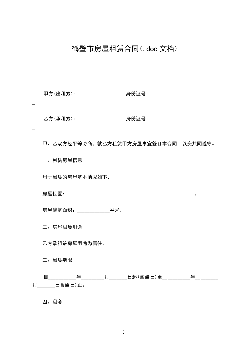 乙方(承租方):___________________身份证号:____________________________