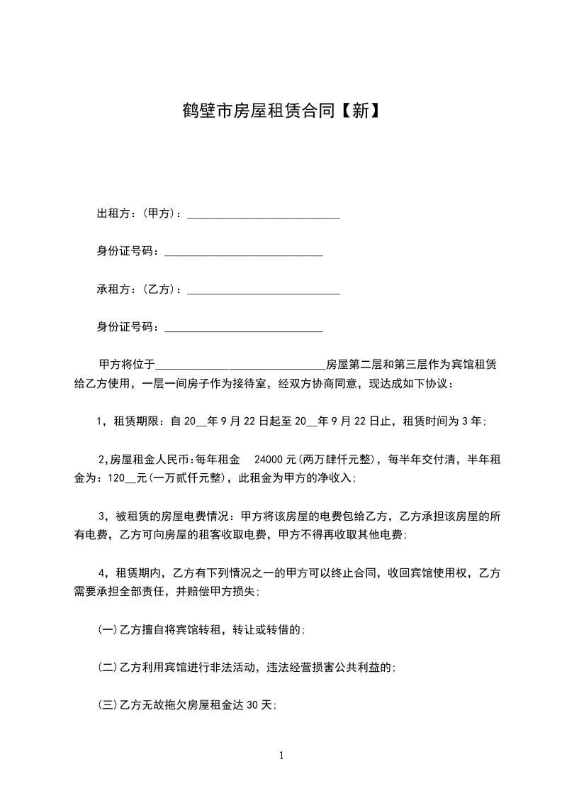 甲方(出租方):___________________身份证号:____________________________