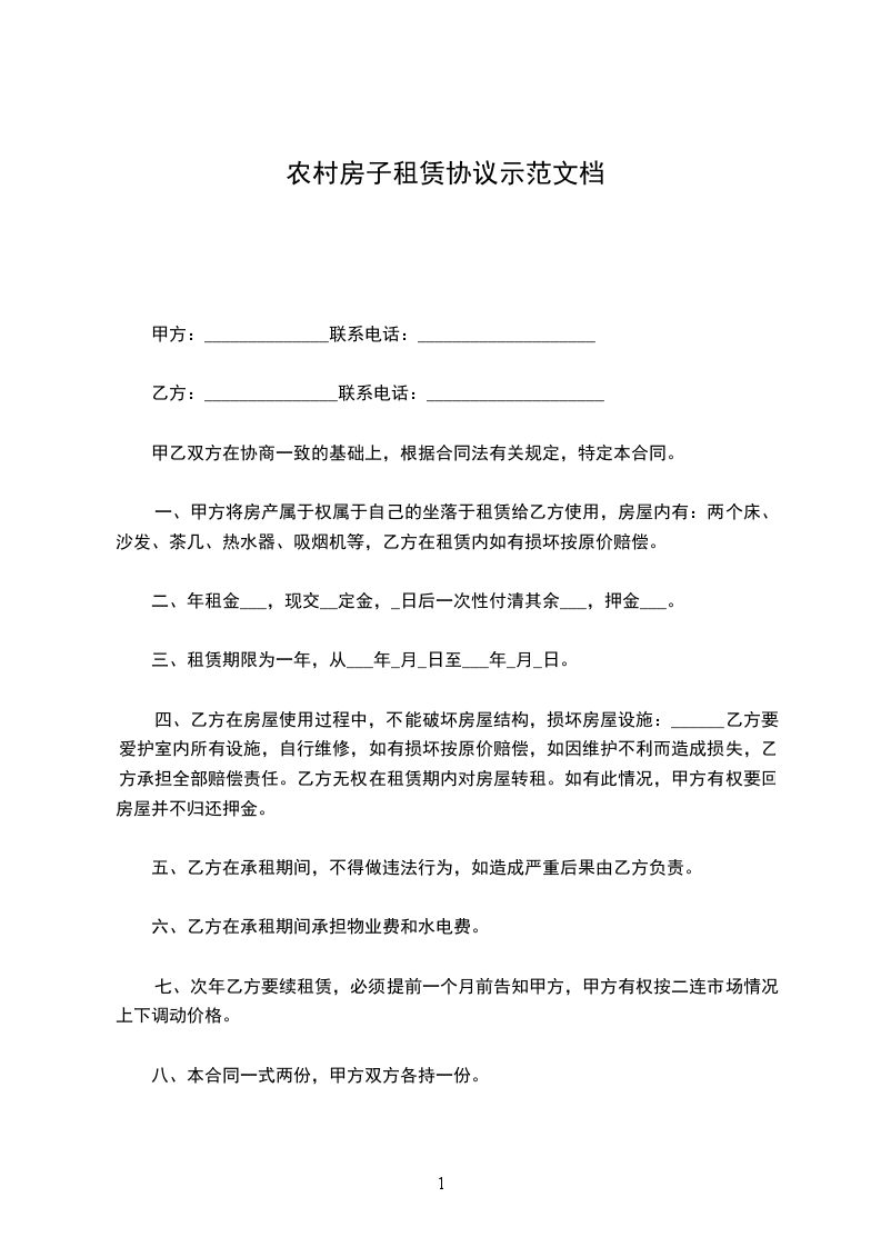 三、租赁期限为一年,从___年_月_日至___年_月_日。