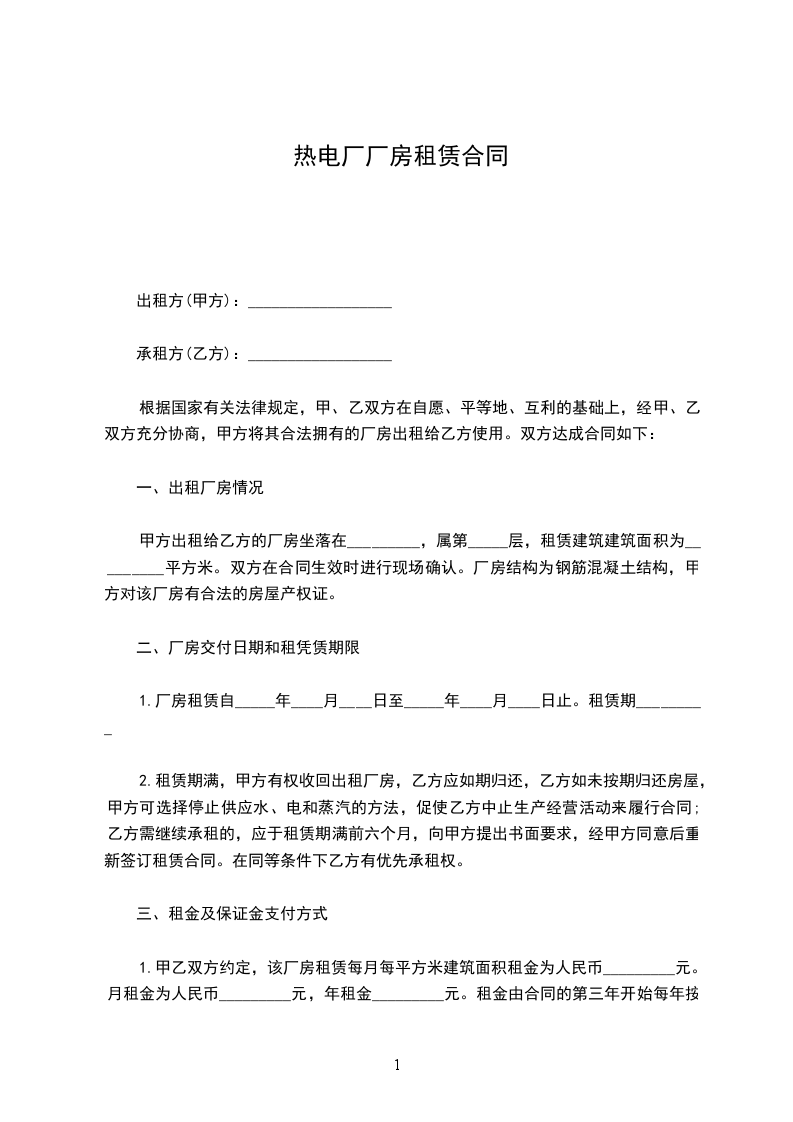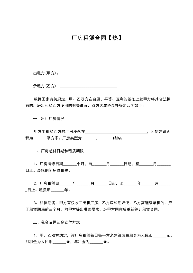 二、乙方租用该厂房期限为三年,即自____年___月__日至____年___月__日止。前30天为装修期,装修期内甲方免收租金。正式起租时间为____年___月__日。
