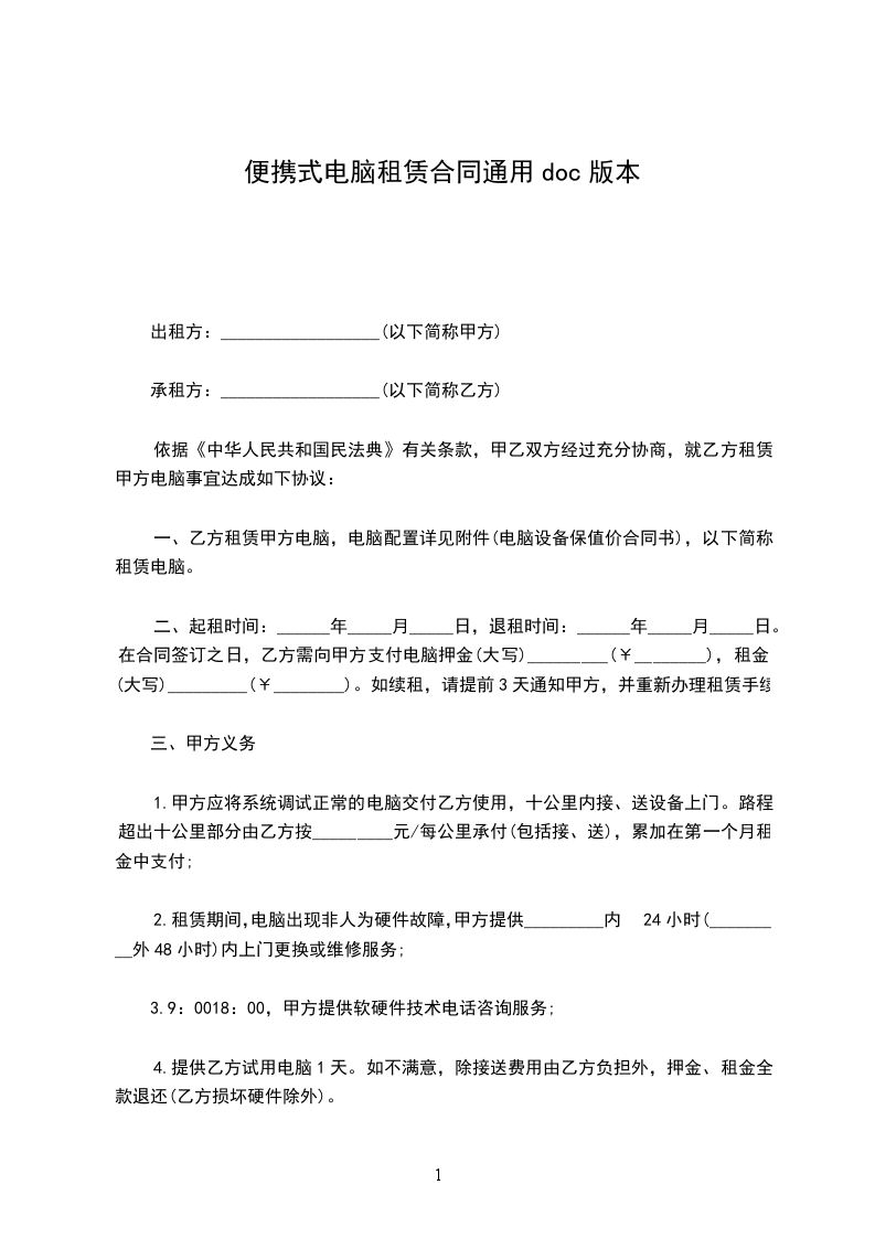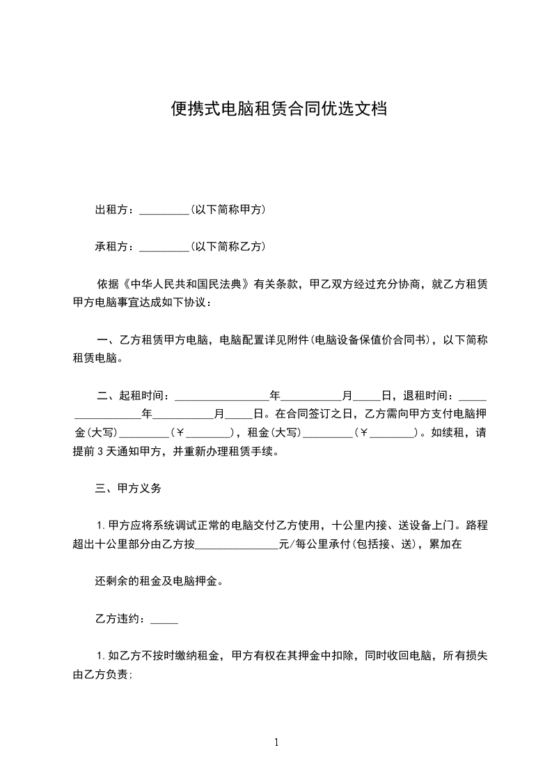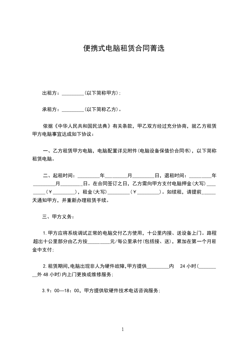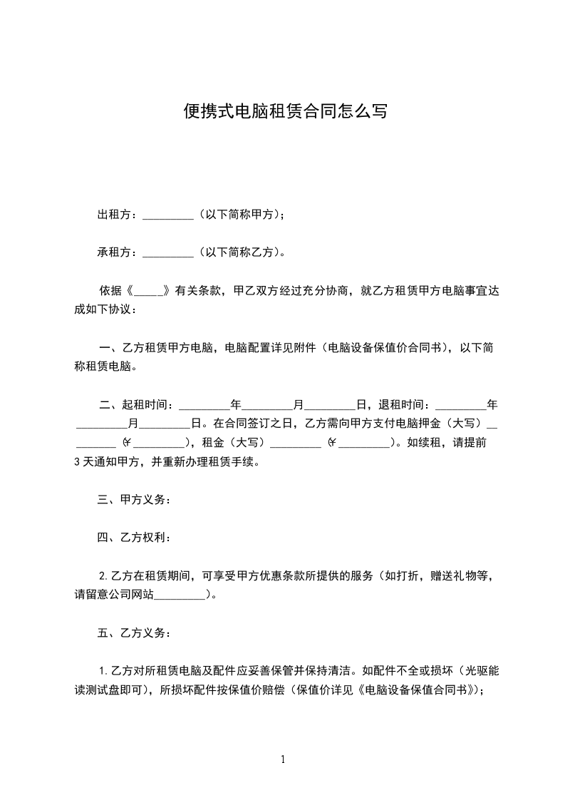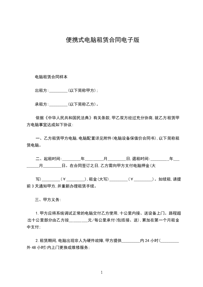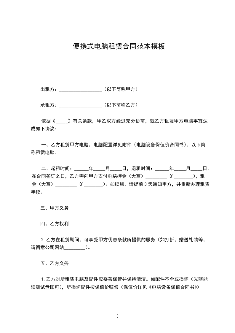 第一条出租电脑及周边产品名称(已下简称:设备),型号,规格及数量(见附表1)