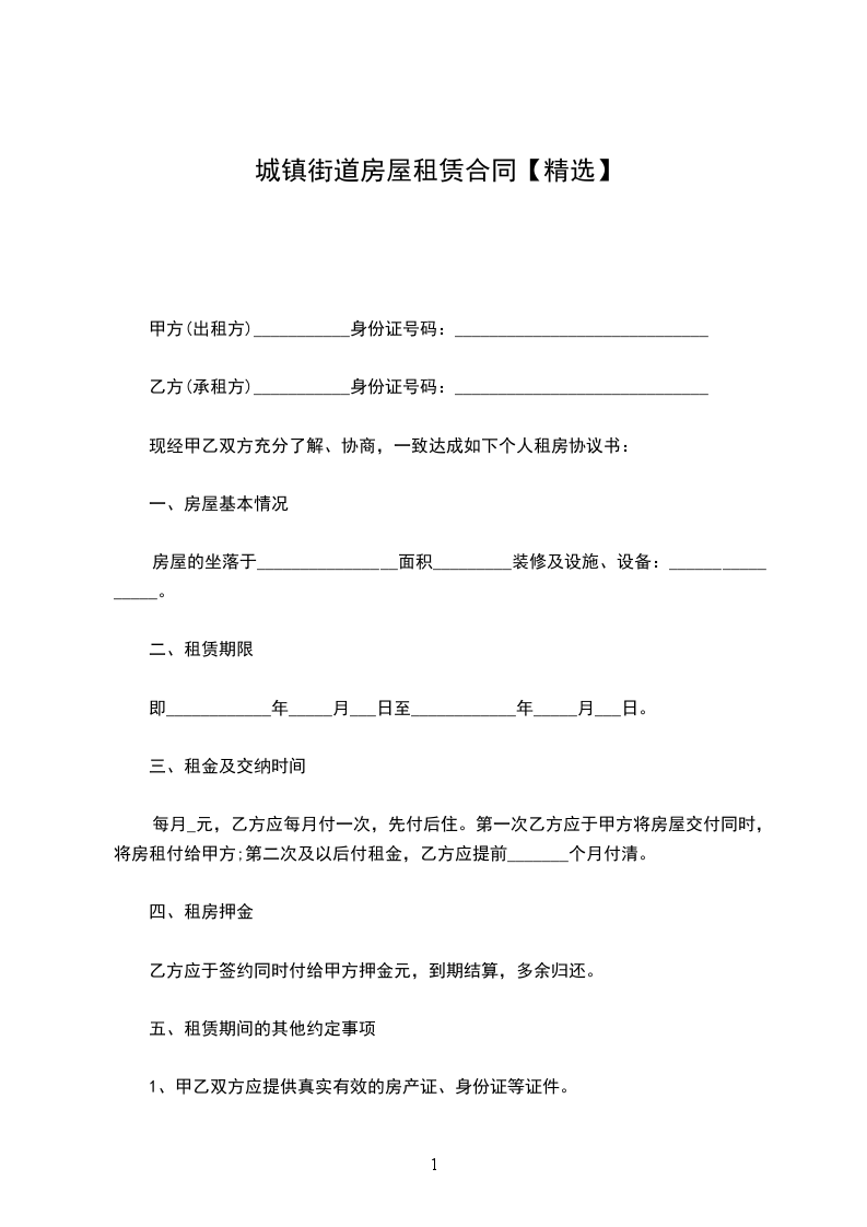甲方(出租方)___________身份证号码:_____________________________