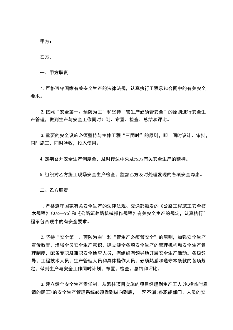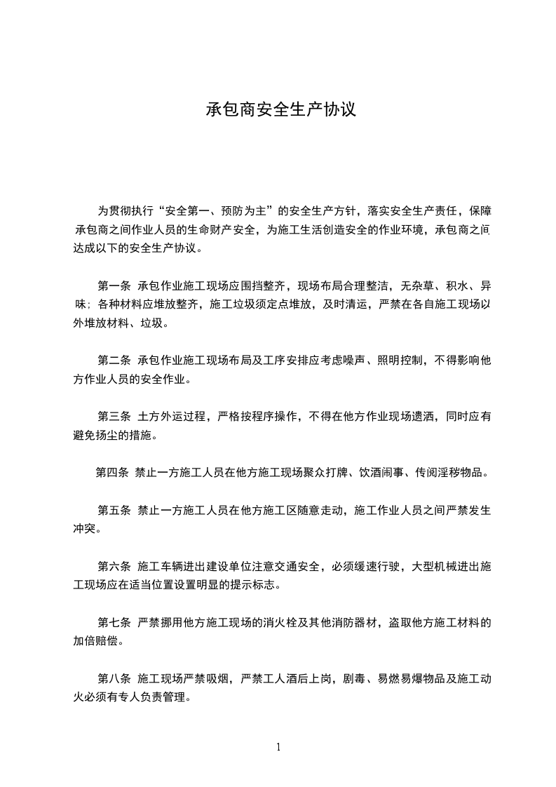 为贯彻执行“安全第一、预防为主”的安全生产方针,落实安全生产责任,保障承包商之间作业人员的生命财产安全,为施工生活创造安全的作业环境,承包商之间达成以下的安全生产协议。