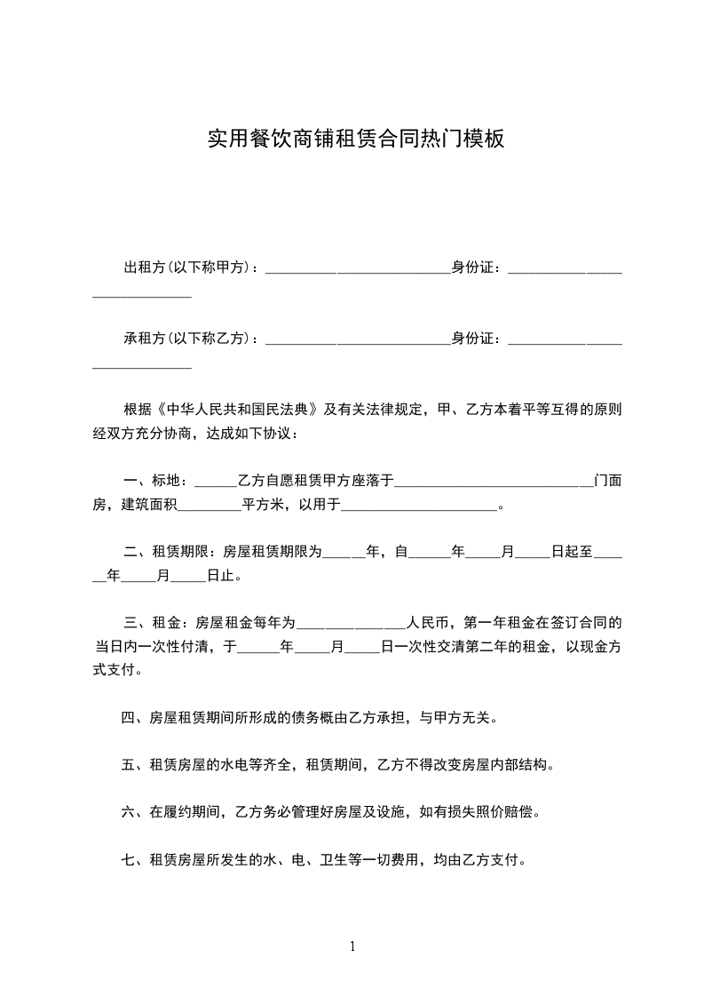 承租方(以下称乙方):__________________________身份证:______________________________