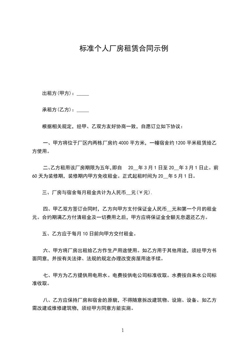 出租方:______,以下简称甲方