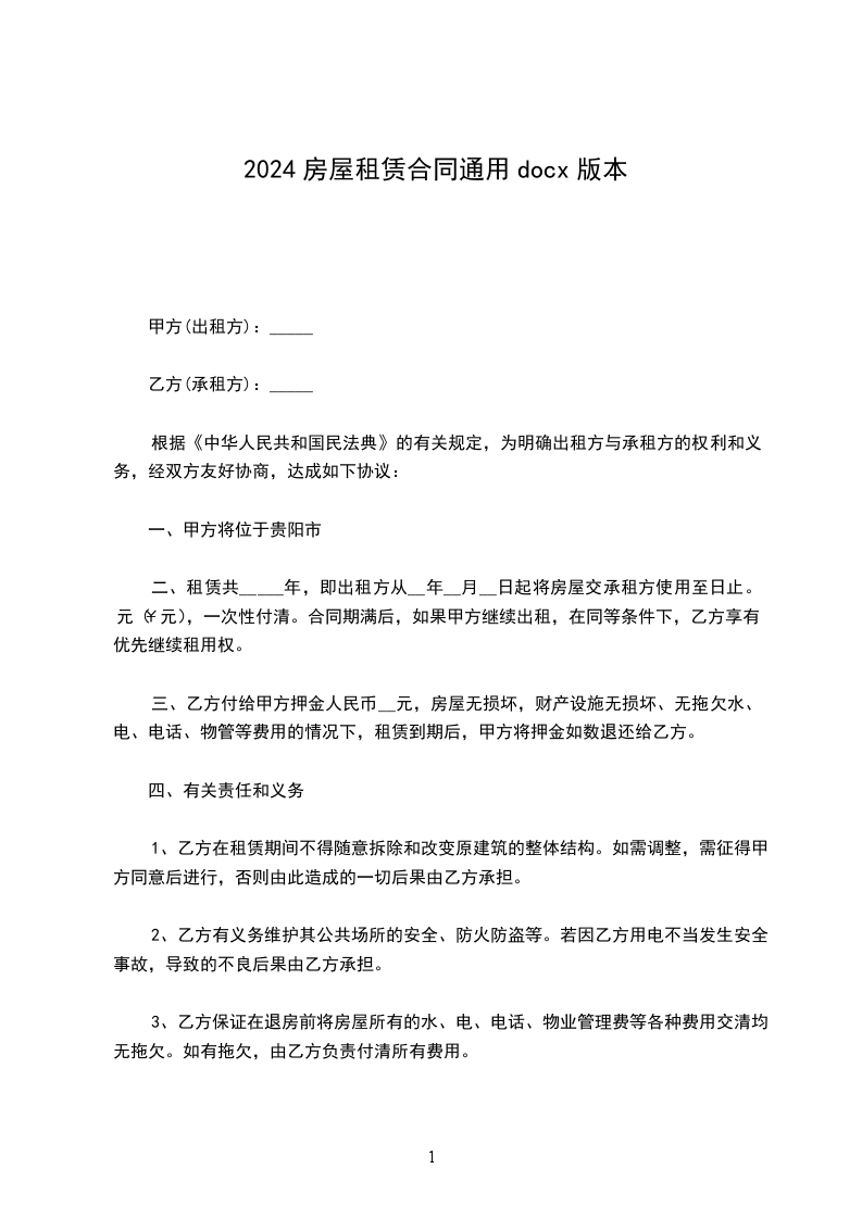 (一)甲方应保证出租房屋的建筑结构和设备符合建筑、消防、治安、卫生等方面的安全条件,不得危及人身安全;承租人保证遵守国家、咸阳市的法律规定以及该房屋所在小区的物业管理规约。