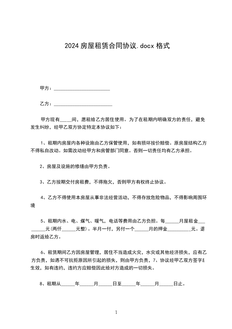 (一)房屋租赁期自__年__月__日至__年__月__日,共计_____年个月。