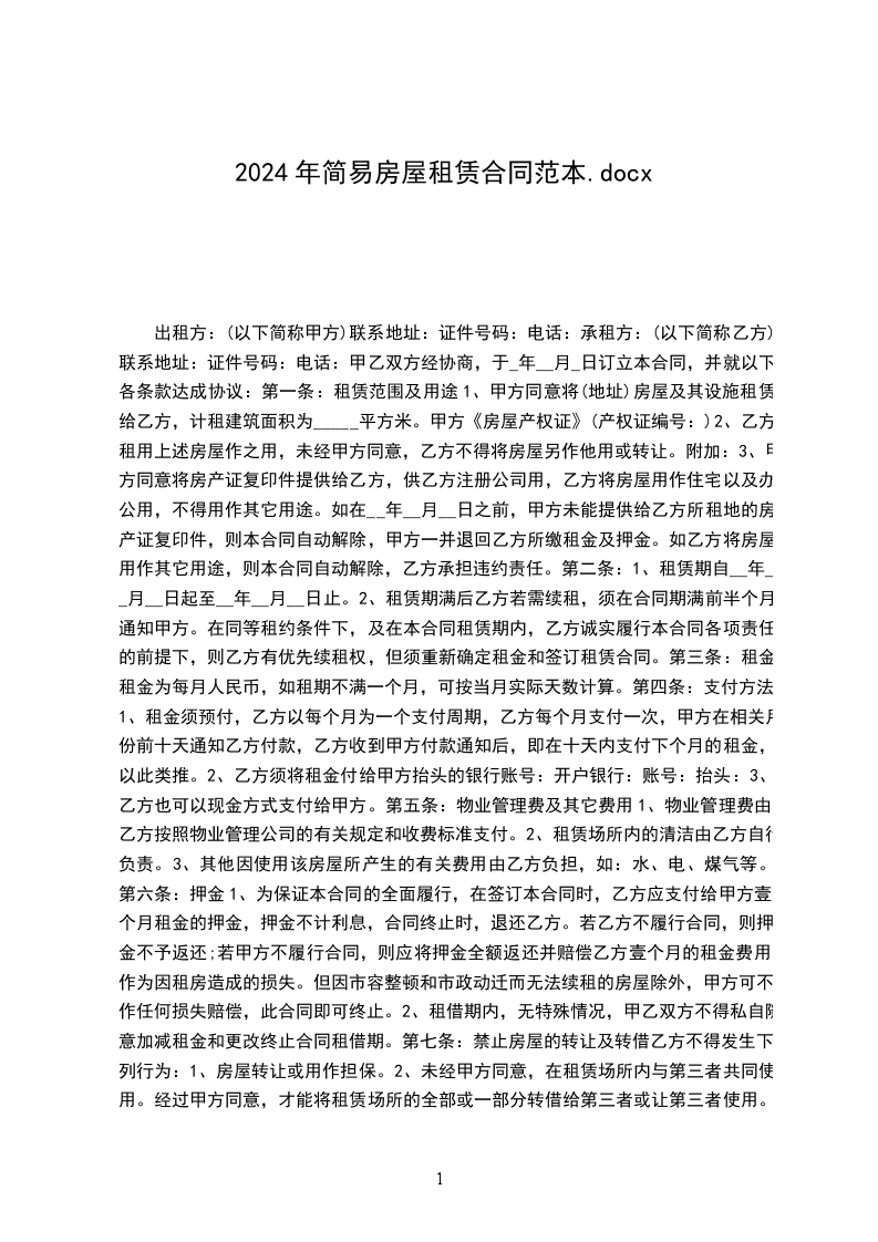 出租人(甲方):_____证件类型及编号: