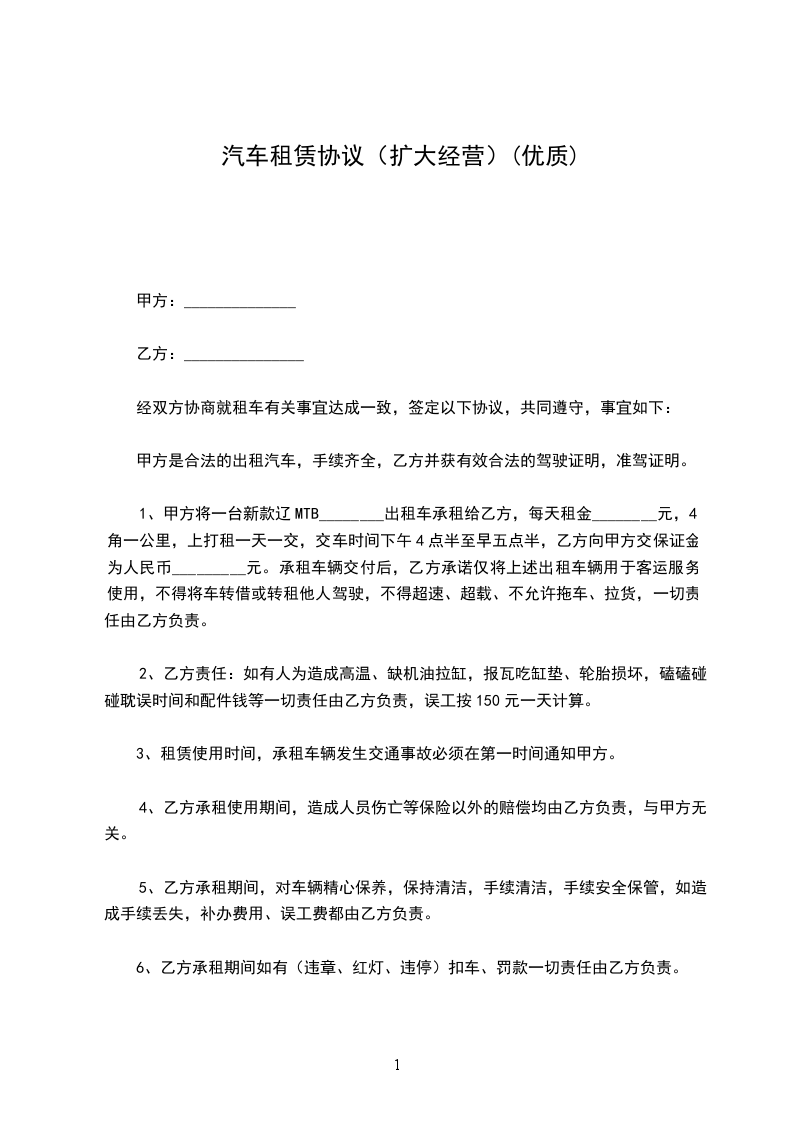 1、甲方为乙方提供证照齐全有效,技术状况良好的车辆。