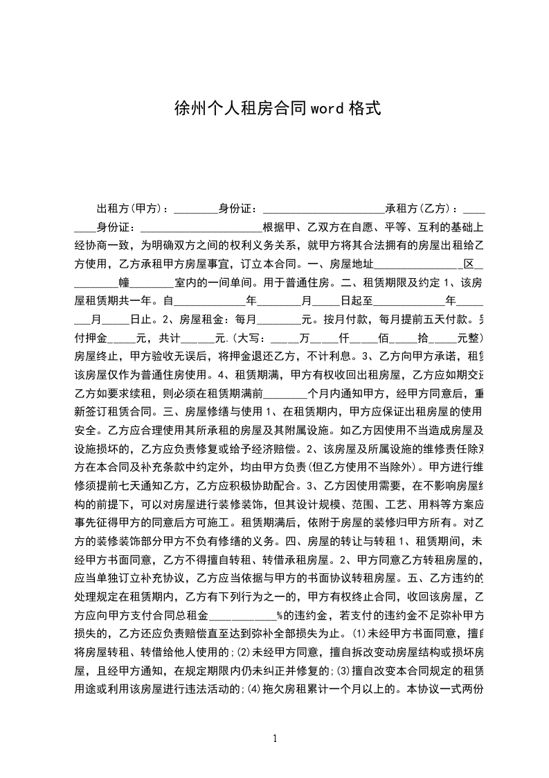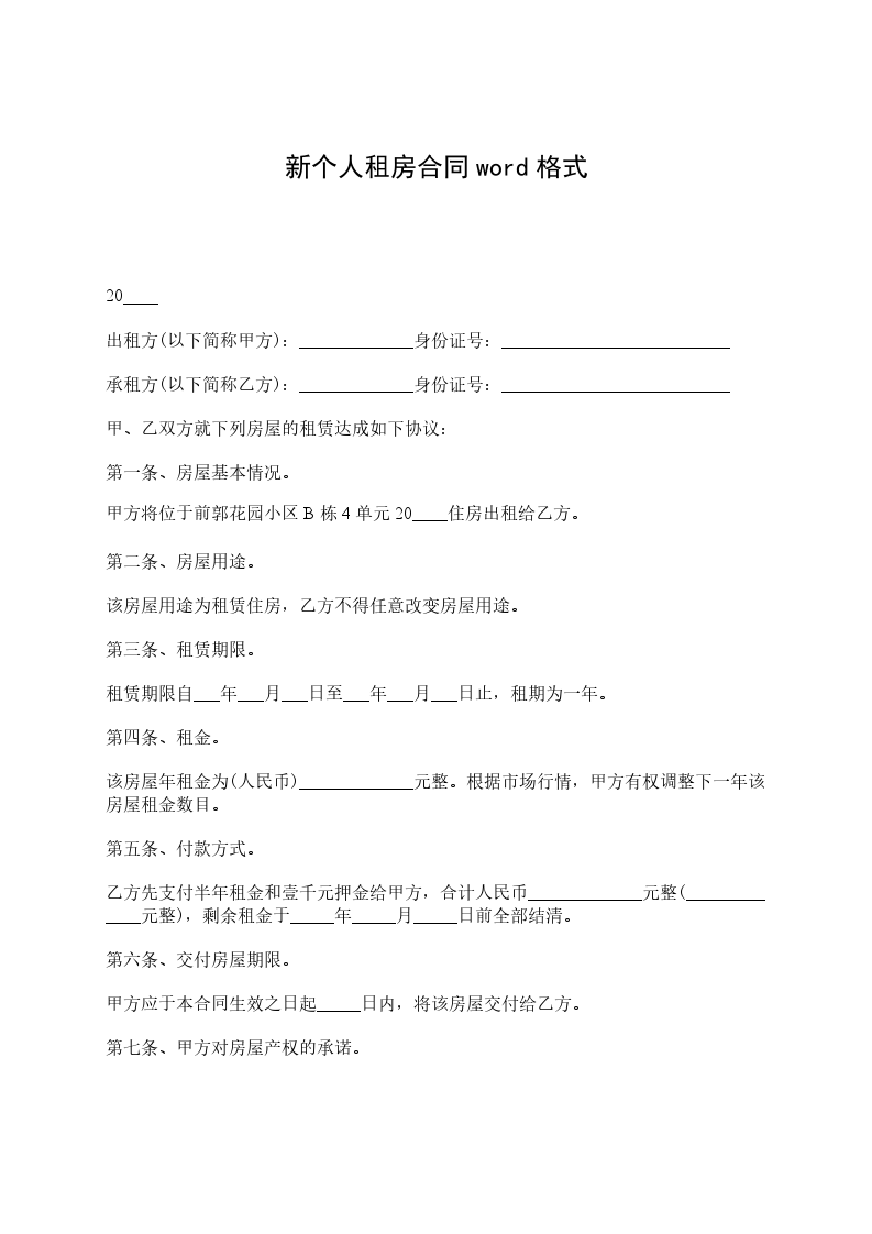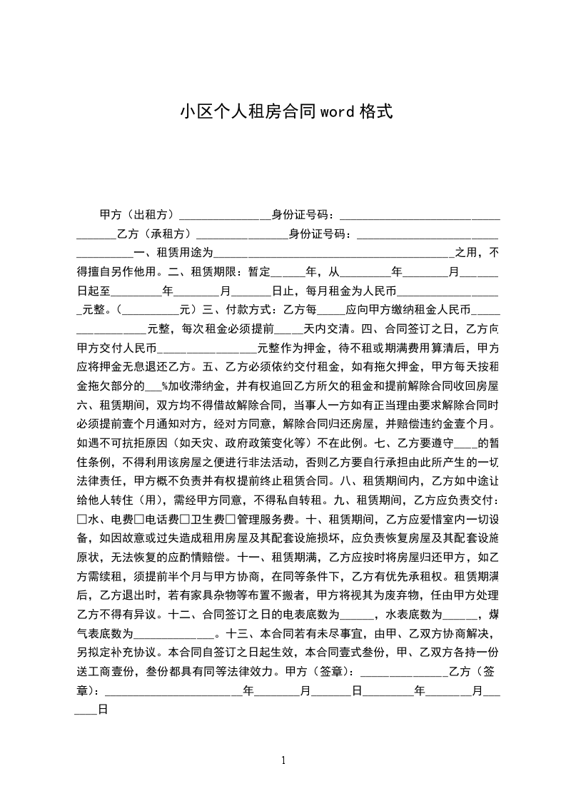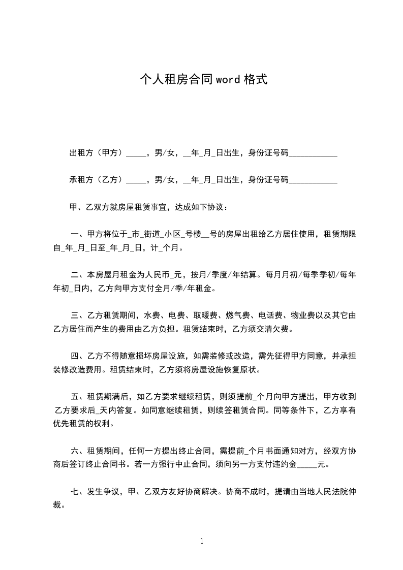 承租方(乙方)_____,男/女,__年_月_日出生,身份证号码____________