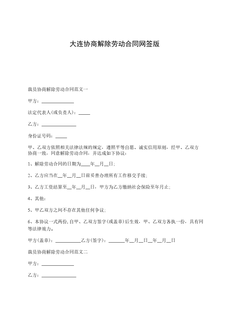 1、经甲乙双方共同协商同意,并签定《协商解除劳动合同协议书》,约定于20__年12月21日解除劳动合同关系。
