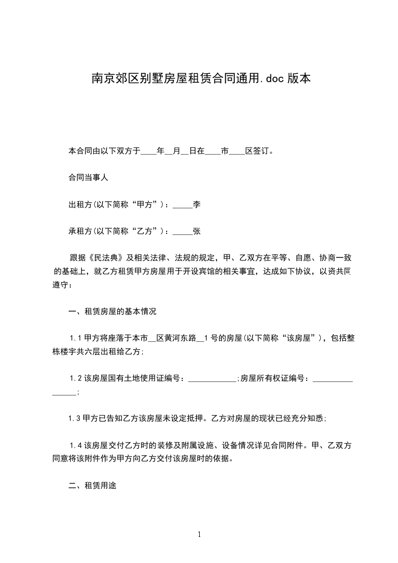 跟据《民法典》及相关法律、法规的规定,甲、乙双方在平等、自愿、协商一致的基础上,就乙方租赁甲方房屋用于开设宾馆的相关事宜,达成如下协议,以资共同遵守: