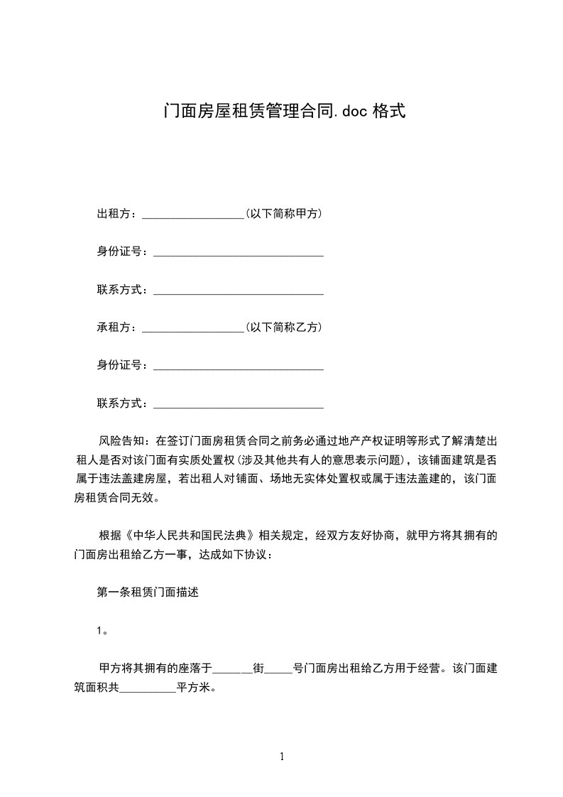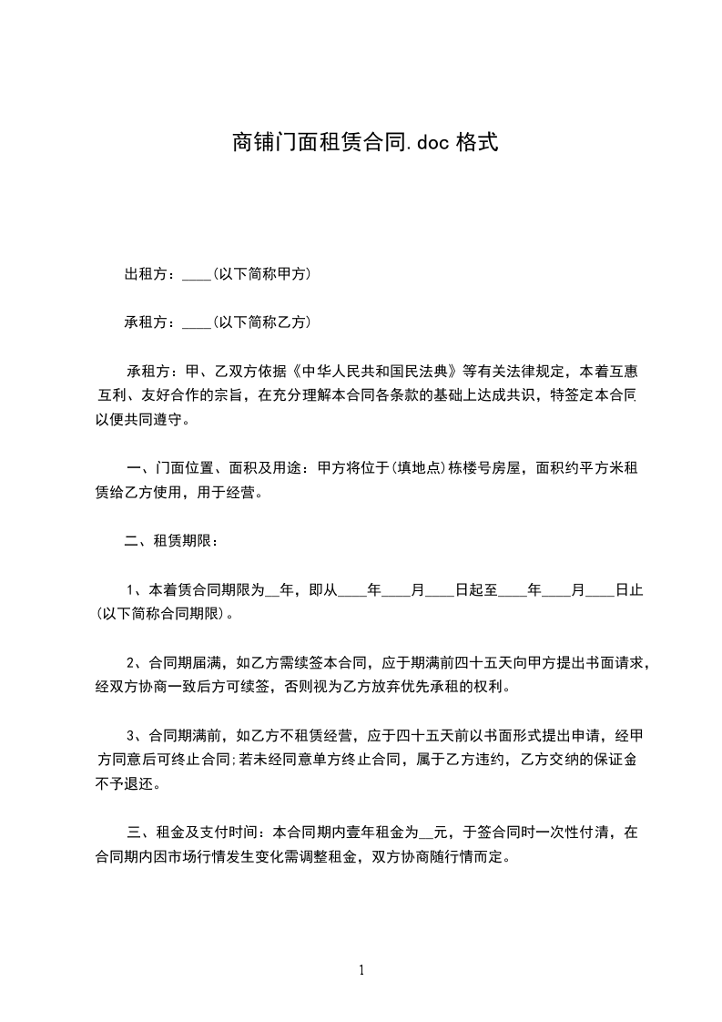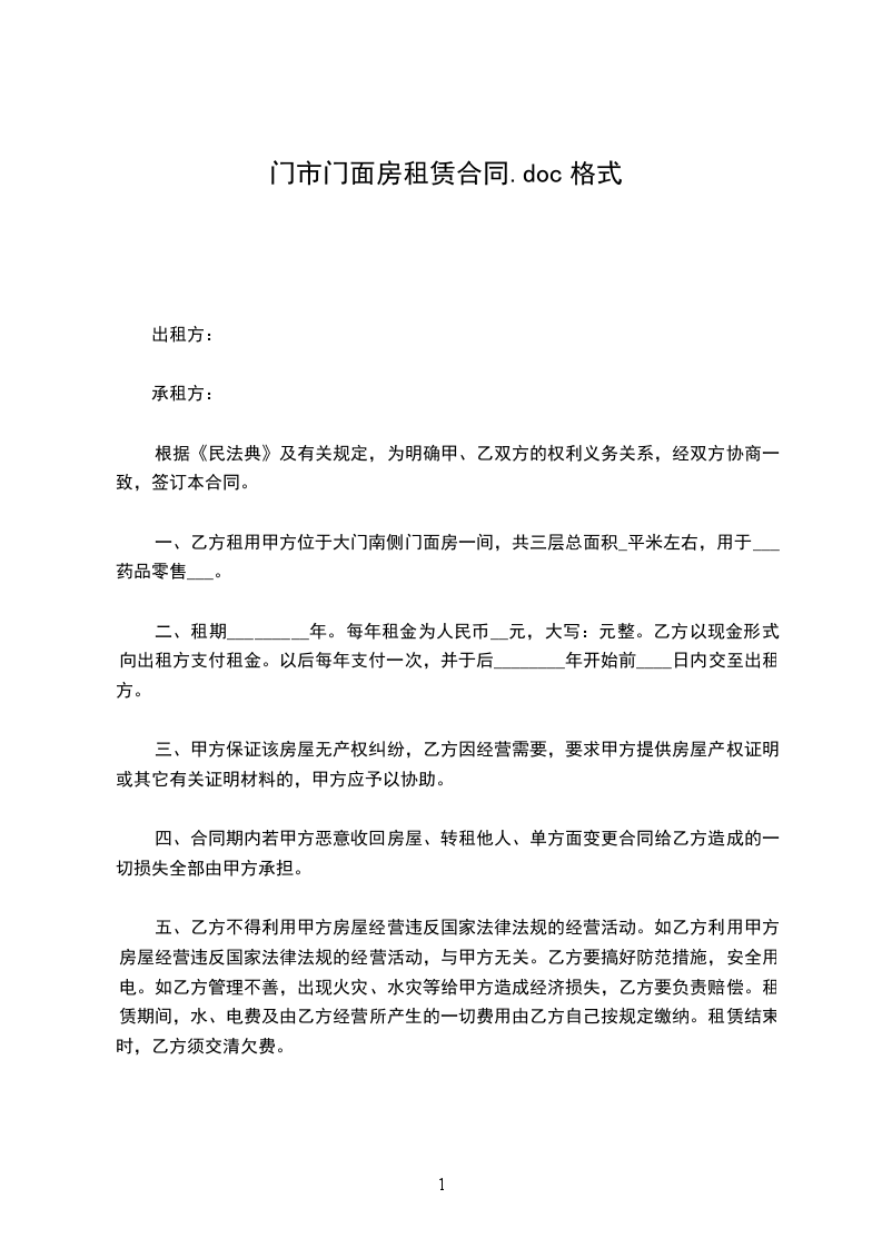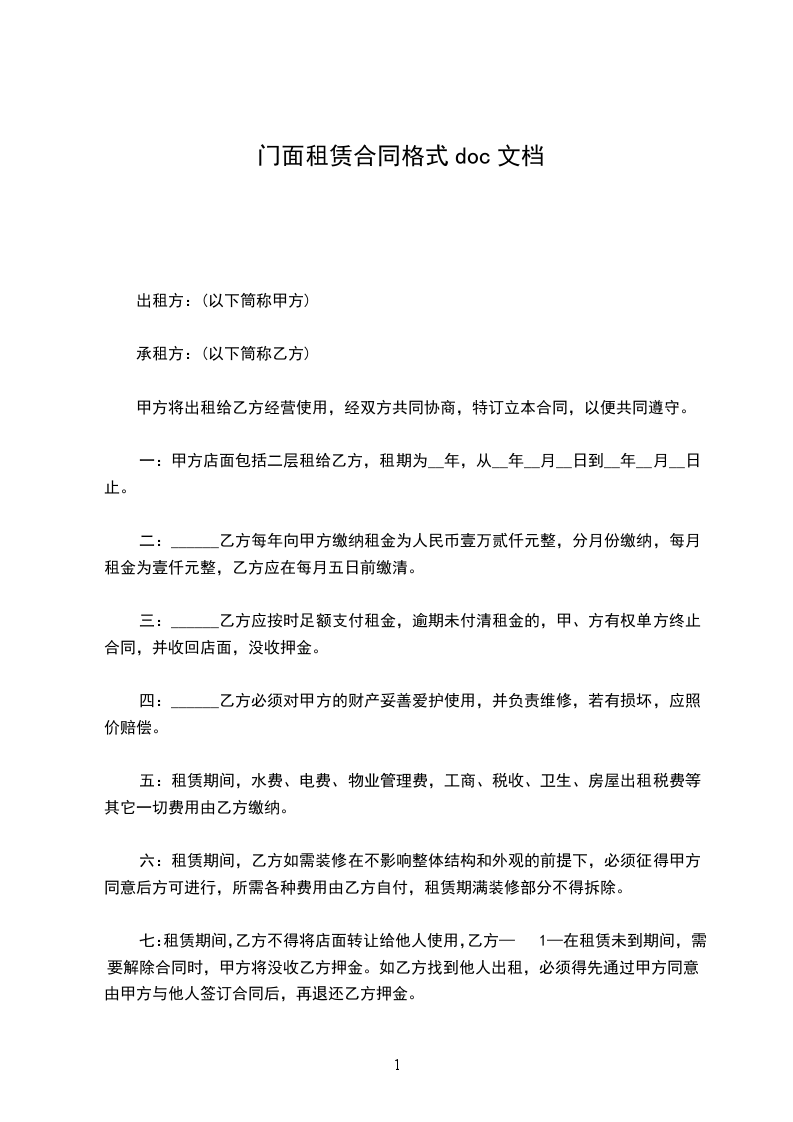 一、甲方将位于门面租赁给乙方。