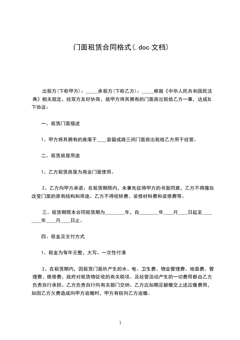 五、租赁期1年,自20__年5月1日起至20__年5月1日止。