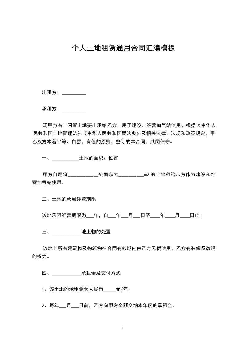 现甲方有一闲置土地要出租给乙方,用于建设、经营加气站使用。根据《中华人民共和国土地管理法》、《中华人民共和国民法典》及相关法律、法规和政策规定,甲乙双方本着平等、自愿、有偿的原则,签订的本合同,共同信守。