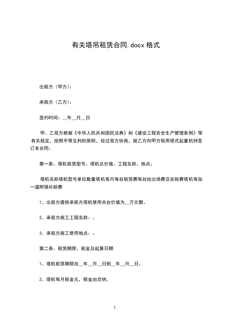 1、塔机租赁期限自__年__月__日到__年__月__日。
