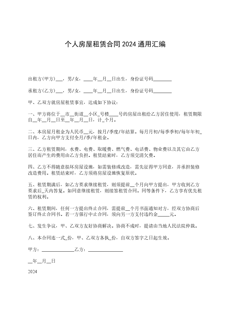承租方(乙方)___,男/女,____年__月__日出生,身份证号码________