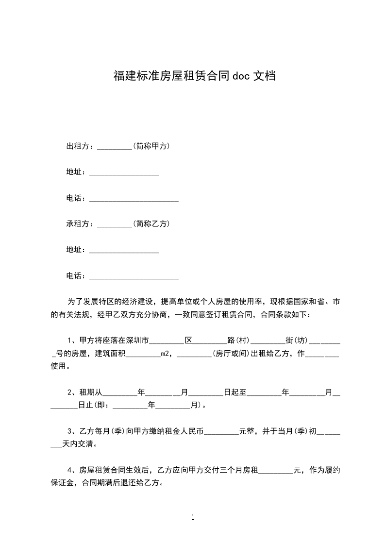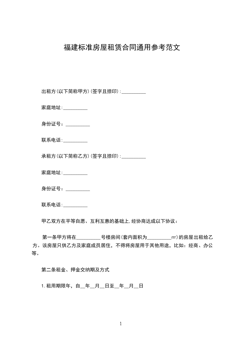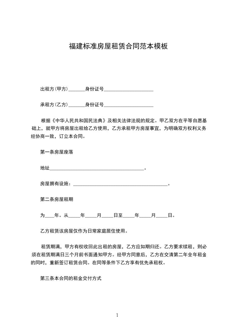 承租方(乙方)_______身份证号_____________________