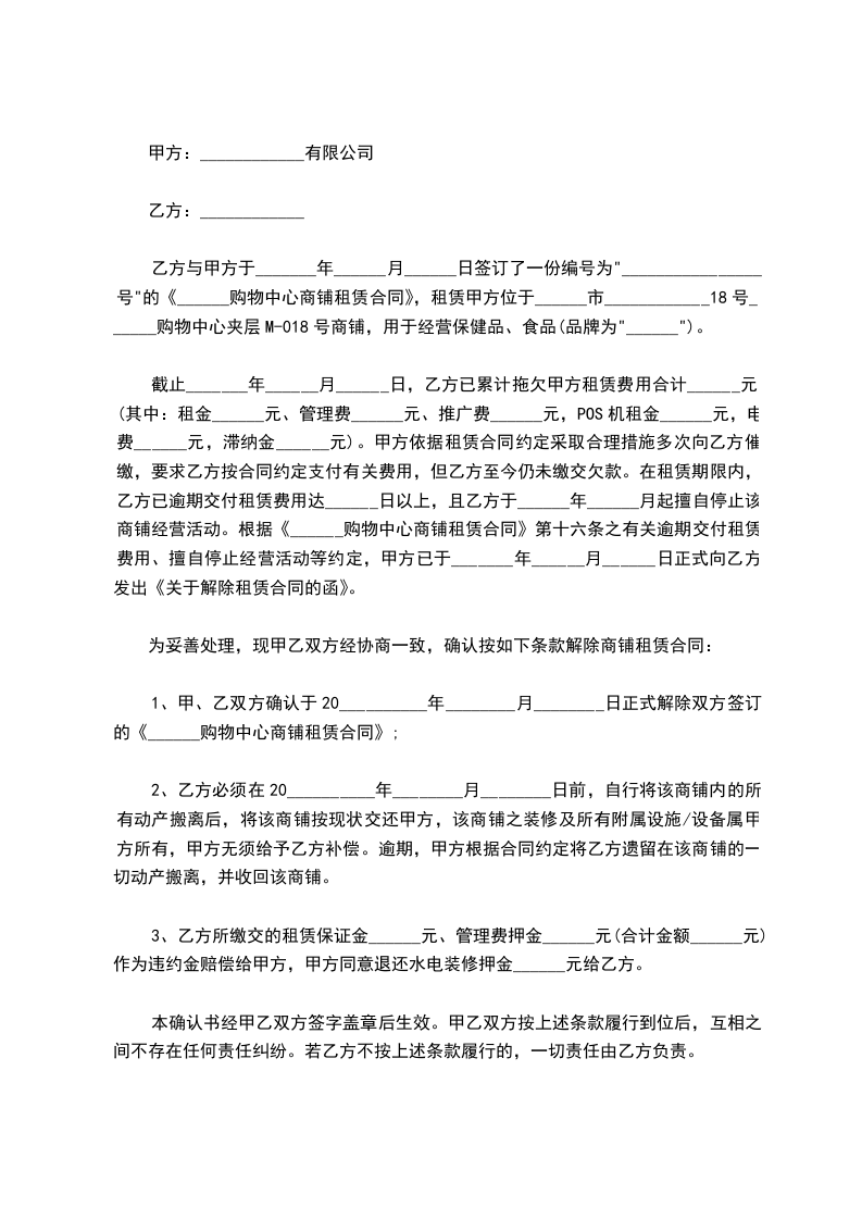 此后,我方又多次催告,但是至今为止,贵公司仍未能履行合同主要义务。根据《民法典》相关规定,我方正式告知贵公司解除双方签订的__________号商铺的租赁合同,自本解除通知到达贵公司之日起生效。上述商铺租赁合同解除后,我方要求贵公司立即无条件退回你方已收取的全部款项,并同意就因贵公司不能履行合同导致我方经济损失的事项协商解决,同时保留采取法律途径解决的权利。